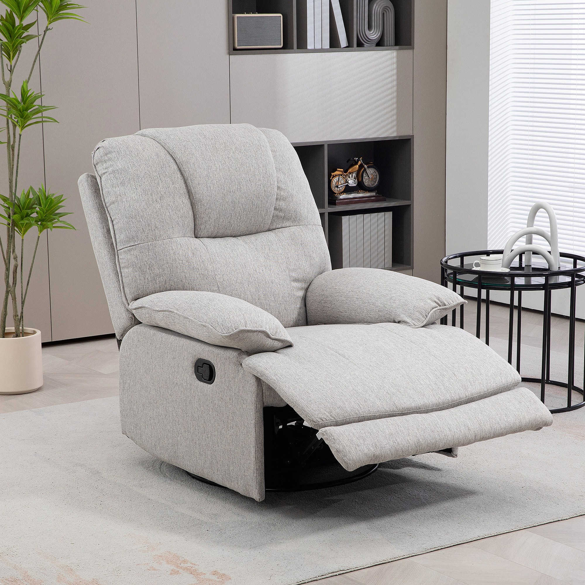 Fauteuil relax lin gris inclinabile 150° TV salon chambre 93x88x102 cm