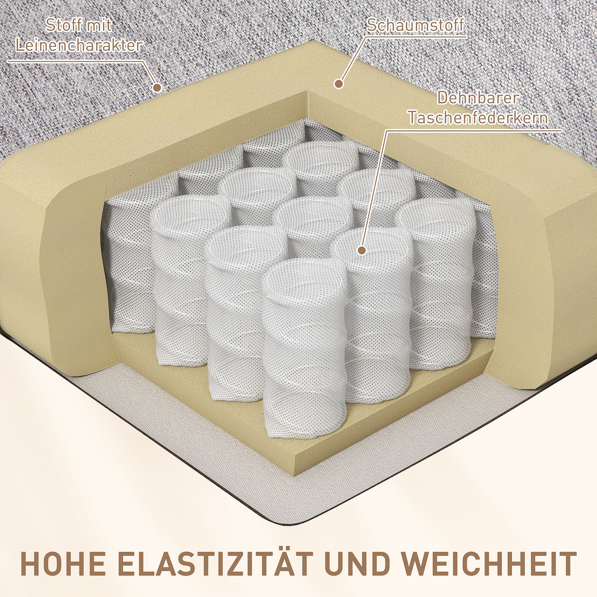 Fauteuil relax avec dossier inclinable, repose-pieds, lin synthétique, ressorts ensachés, gris