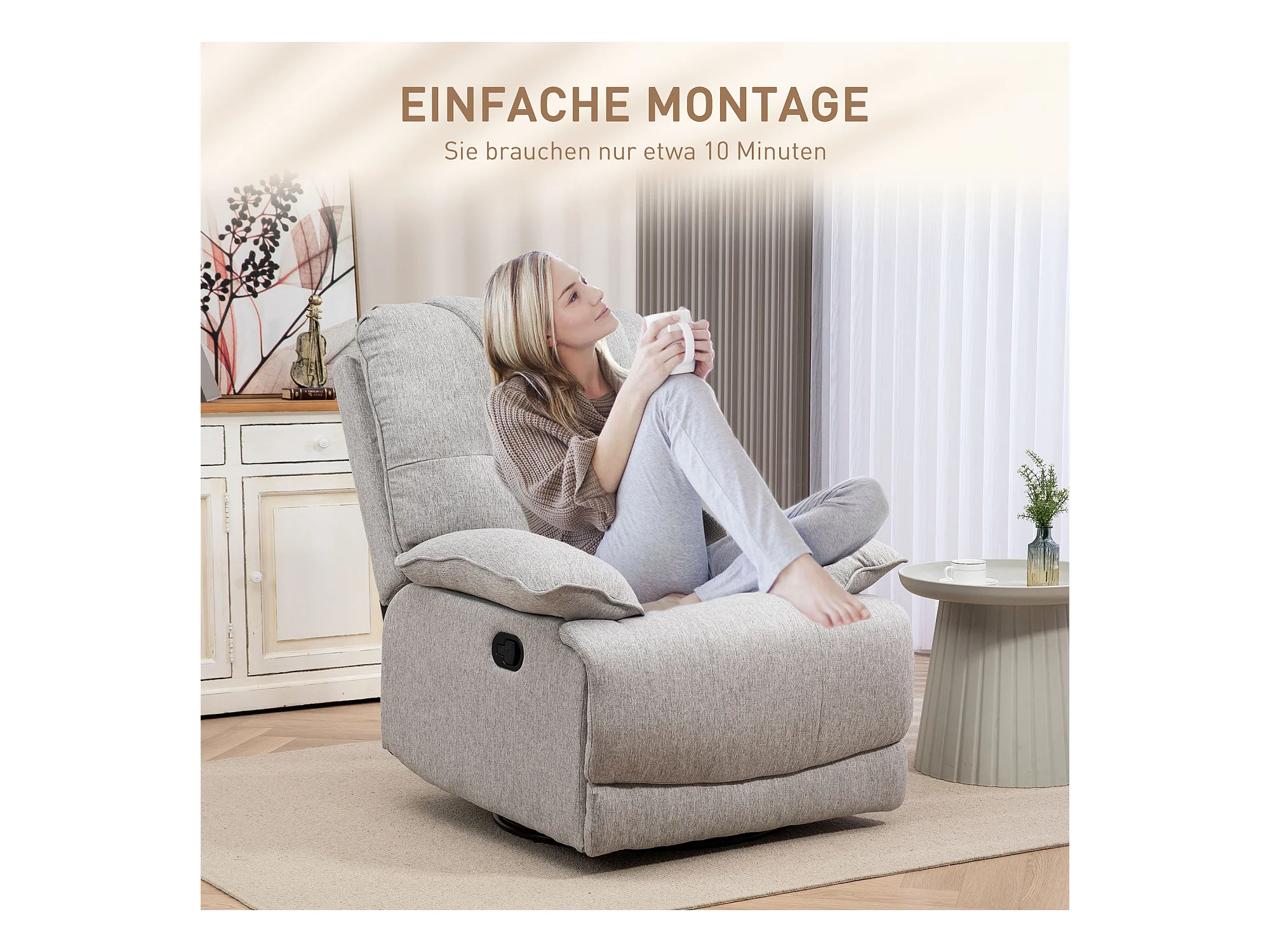 Poltrona reclinabile 150° effetto lino con poggiapiedi grigio chiaro