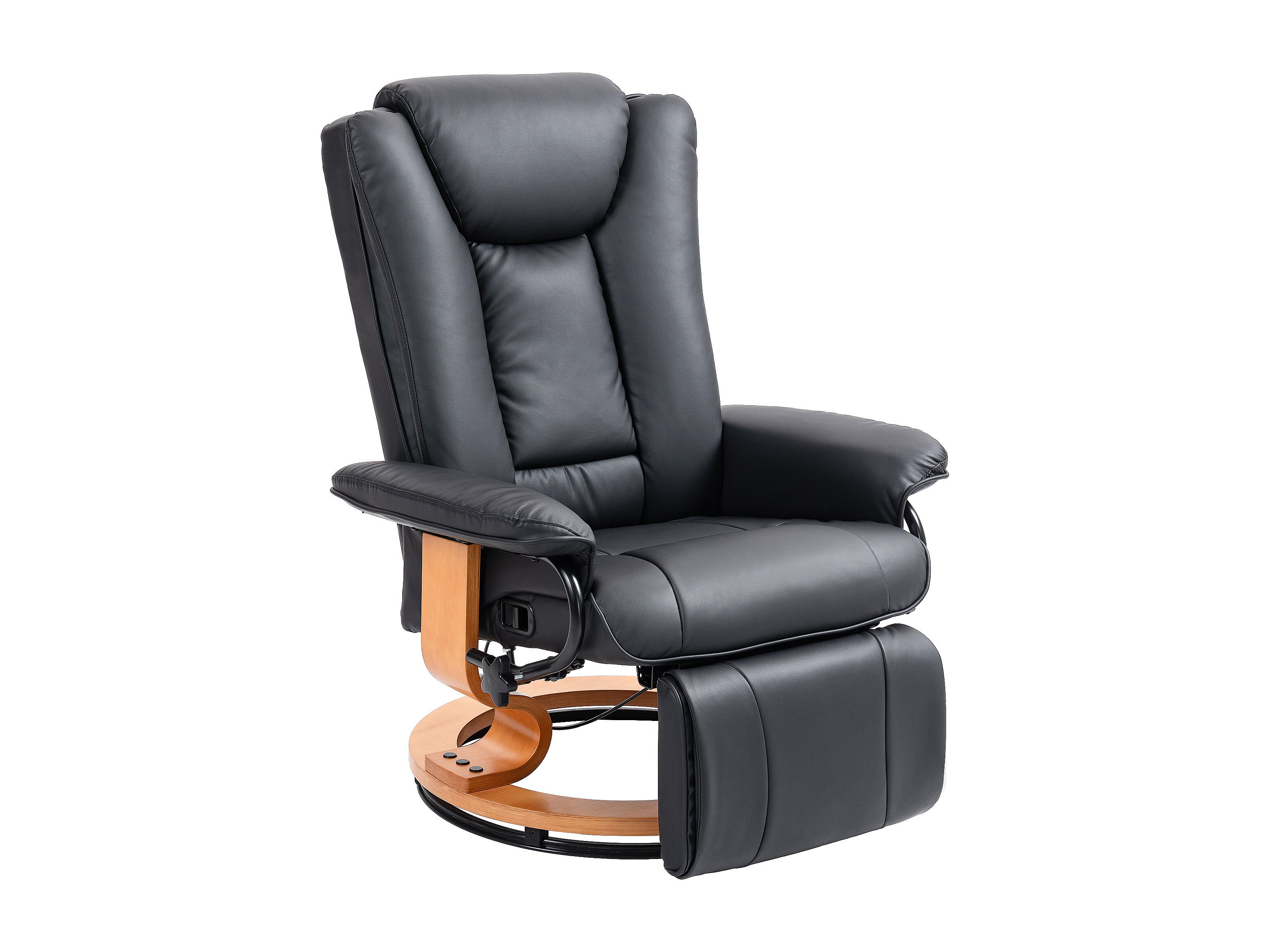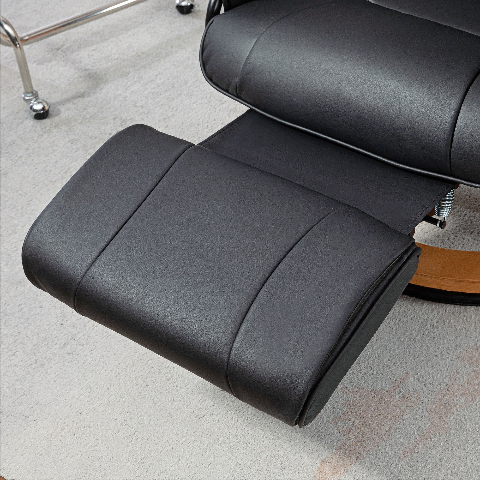 Fauteuil relax pivotant en simili cuir avec repose-pieds et dossier inclinable, noir