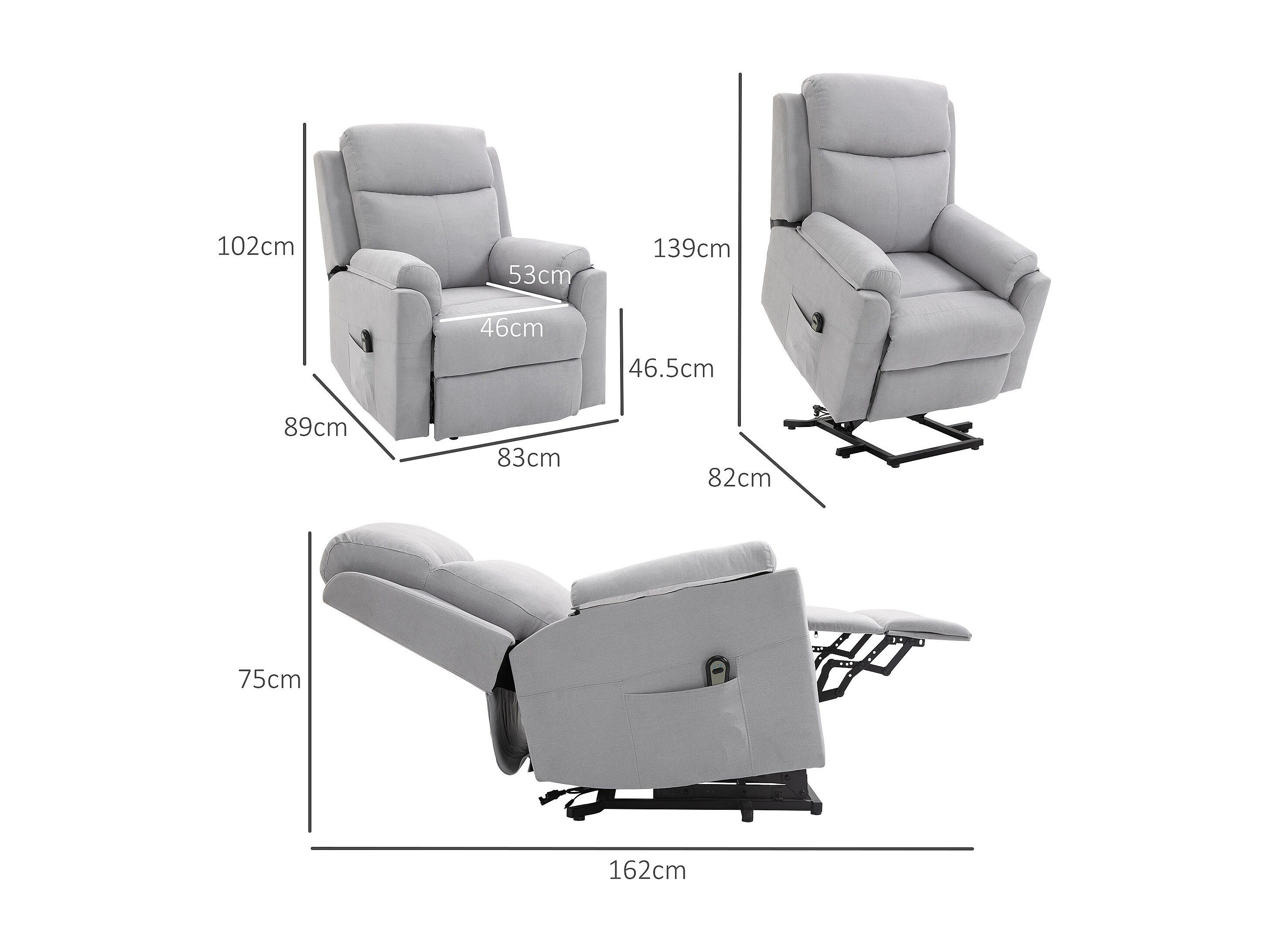 Fauteuil relax électrique gris avec moteur 1, ascenseur, télécommande, repose‑pieds, 120 kg