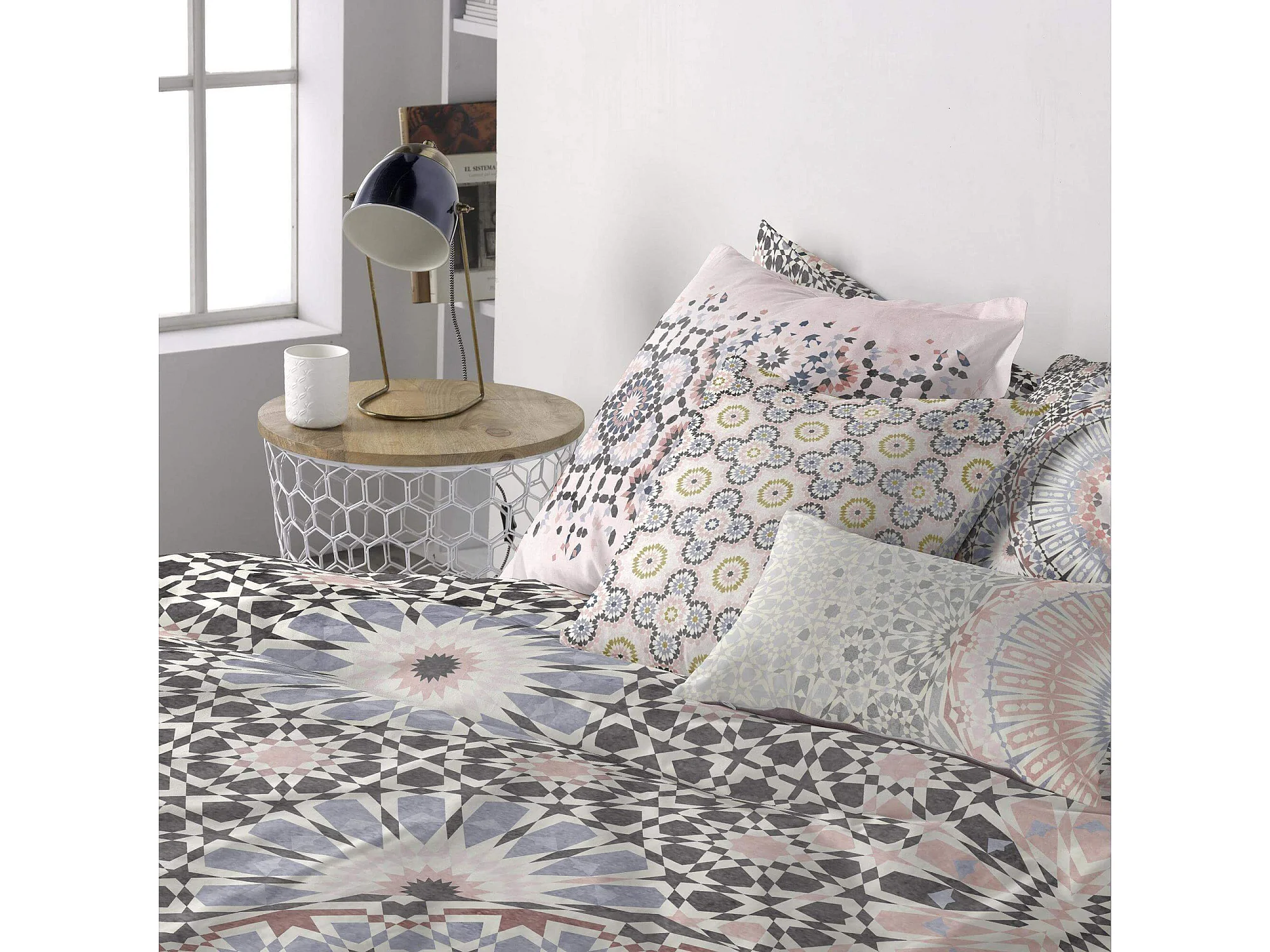 Set letto Percalle cotone 80 fili/cm² Copripium. 240x260 + 2 Federe 63x63 Bianco bordo Beige - AGAMI di PALACIO