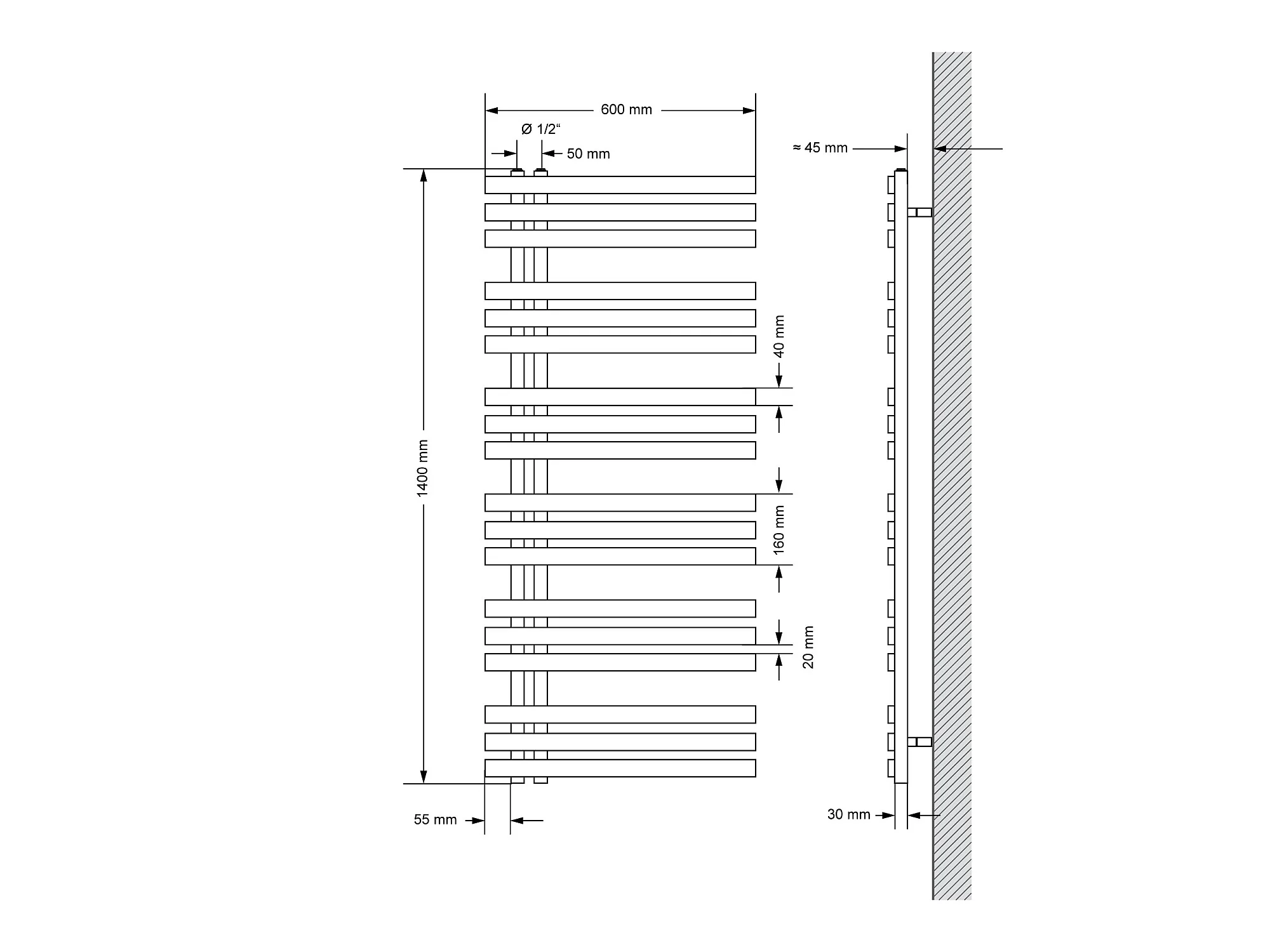 Radiatore da bagno di design Iron EM 500x1400 mm bianco LuxeBath