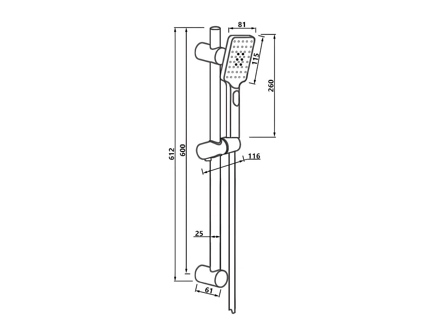 Saliscendi Doccia Nero Con Flessibile E Doccetta Quadrato