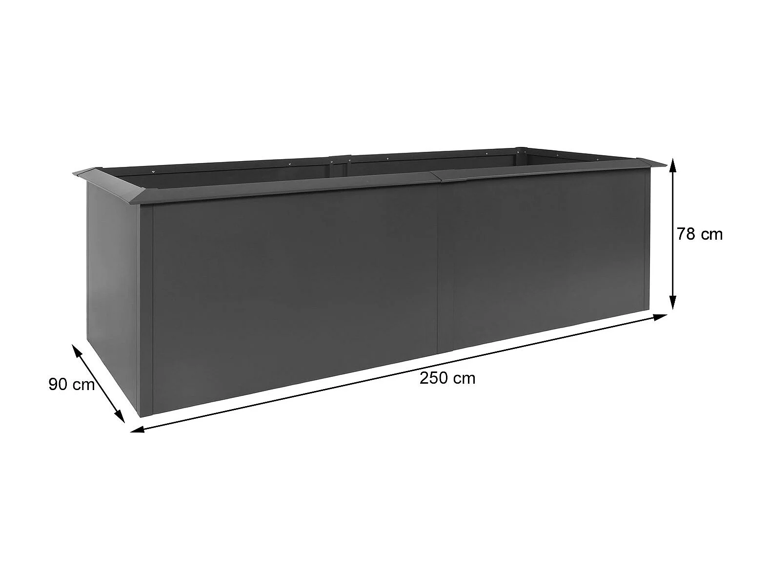 Fioriera aiuola rialzata piante con bordo anti chiocciola MCW-N24 ferro verniciato a polvere 78x250x90cm antracite