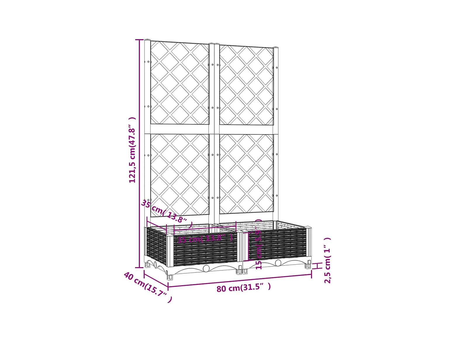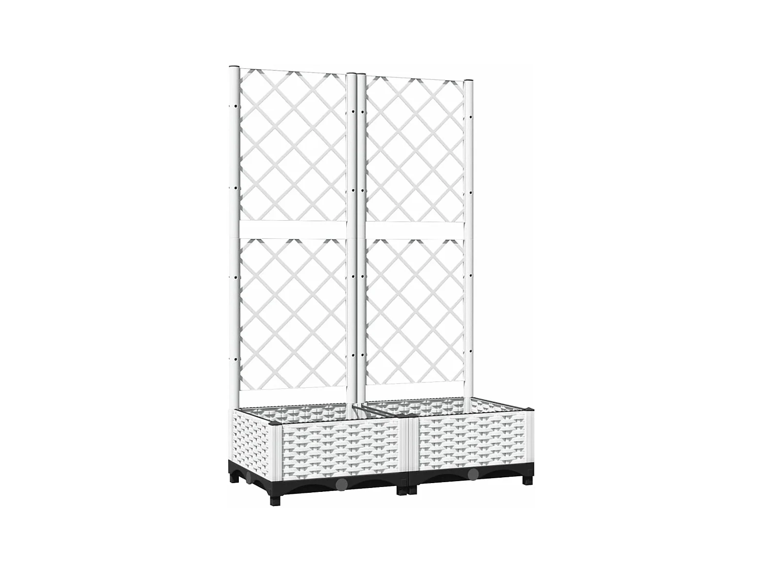 Fioriera aiuola rialzata vassoio piante fiori terrazza giardino con traliccio 80 x 40 x 121,5 cm PP bianco 02_0038301