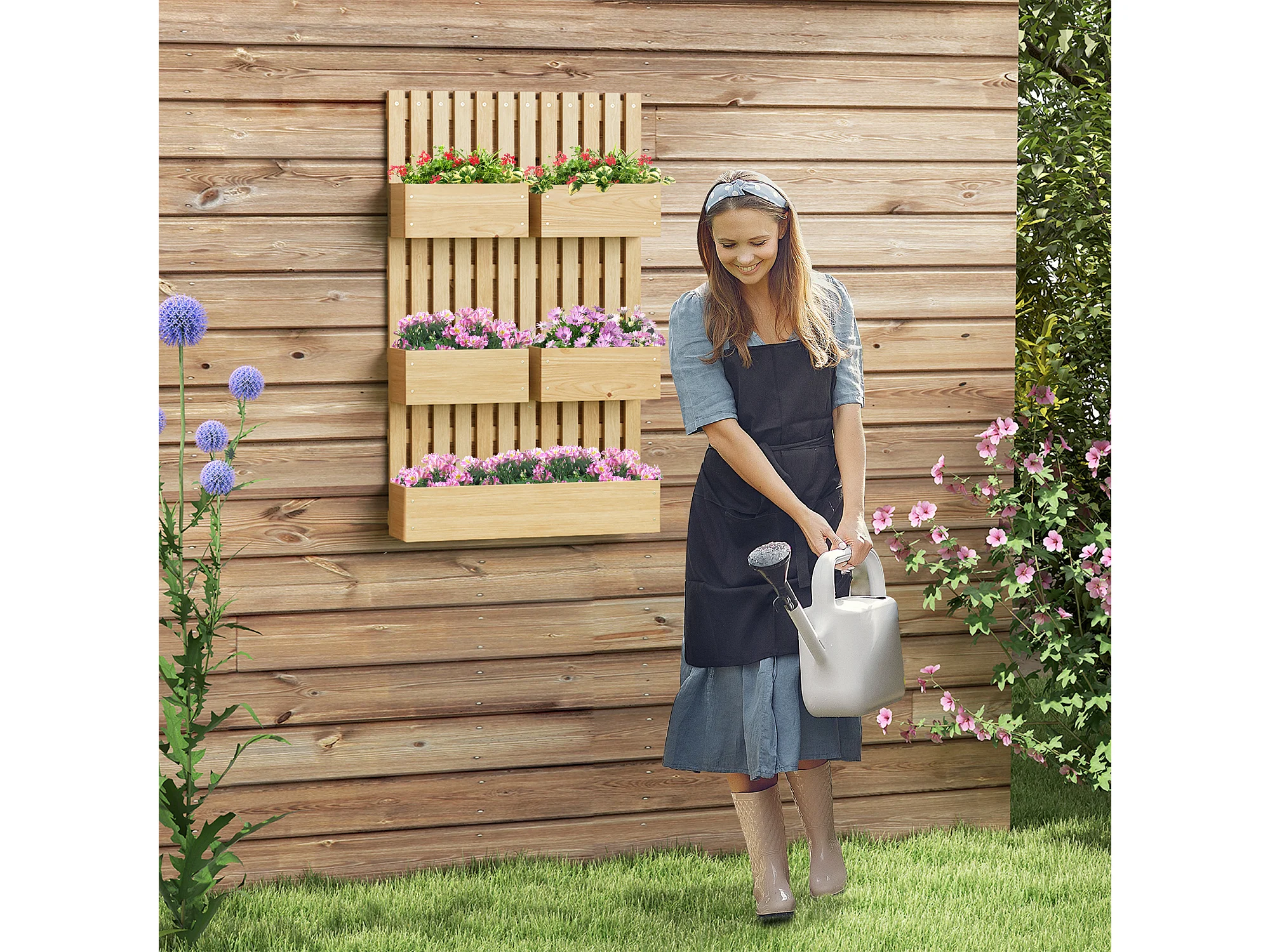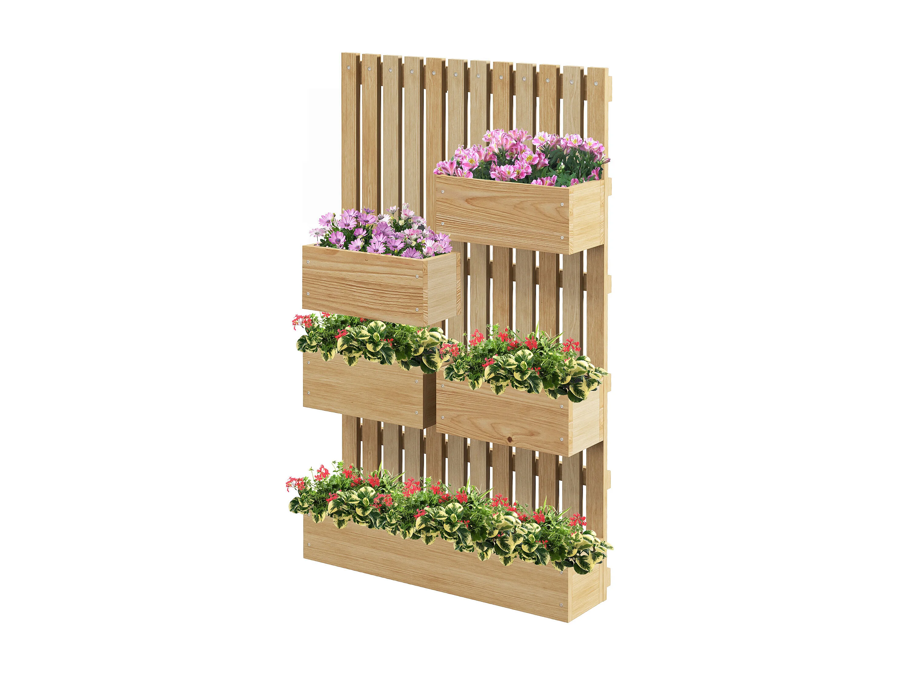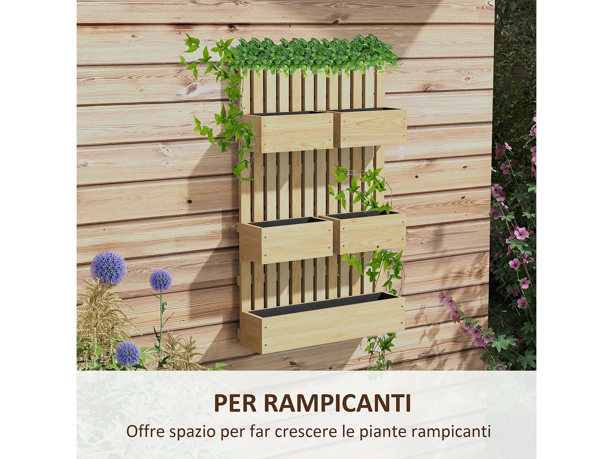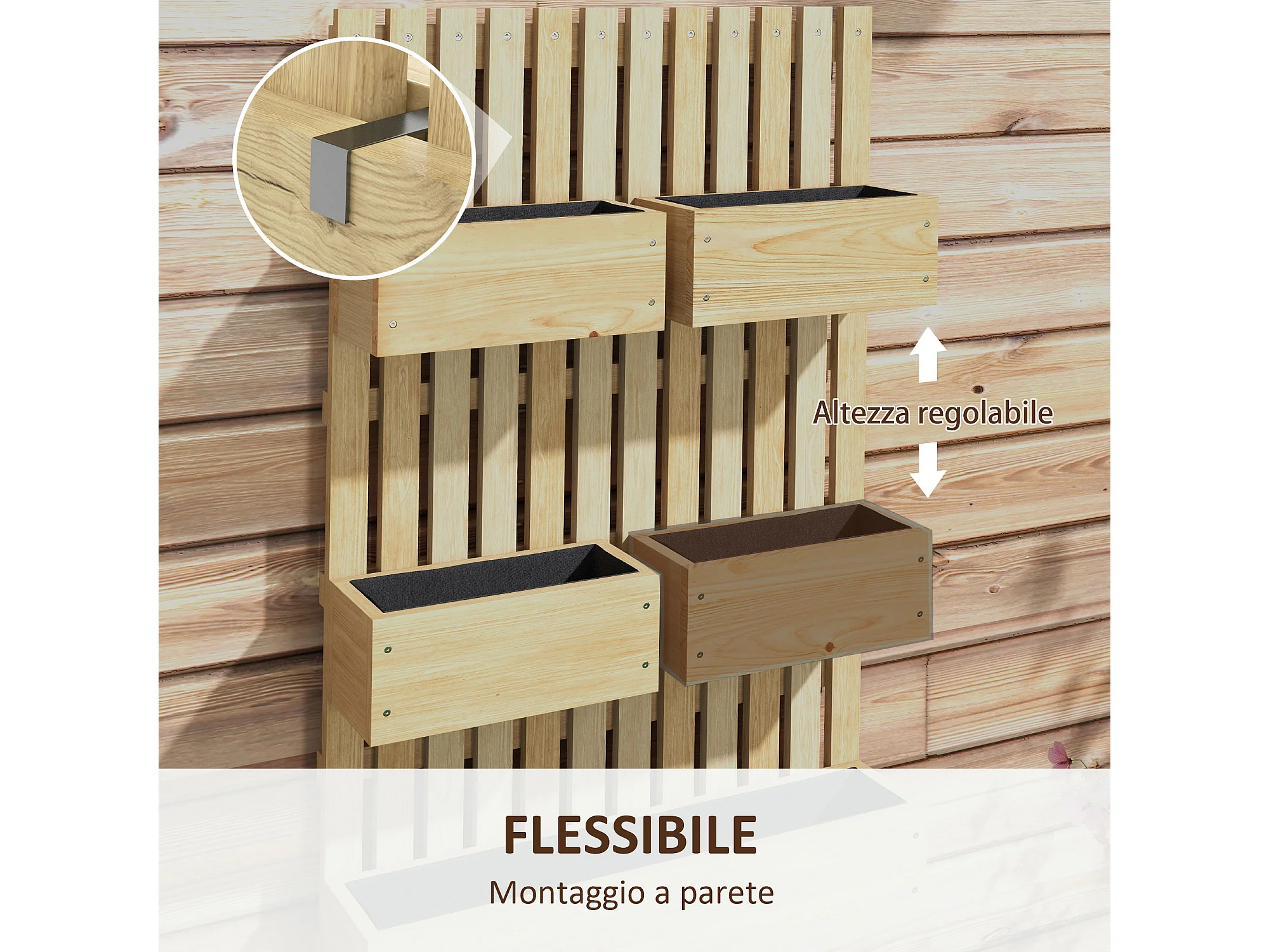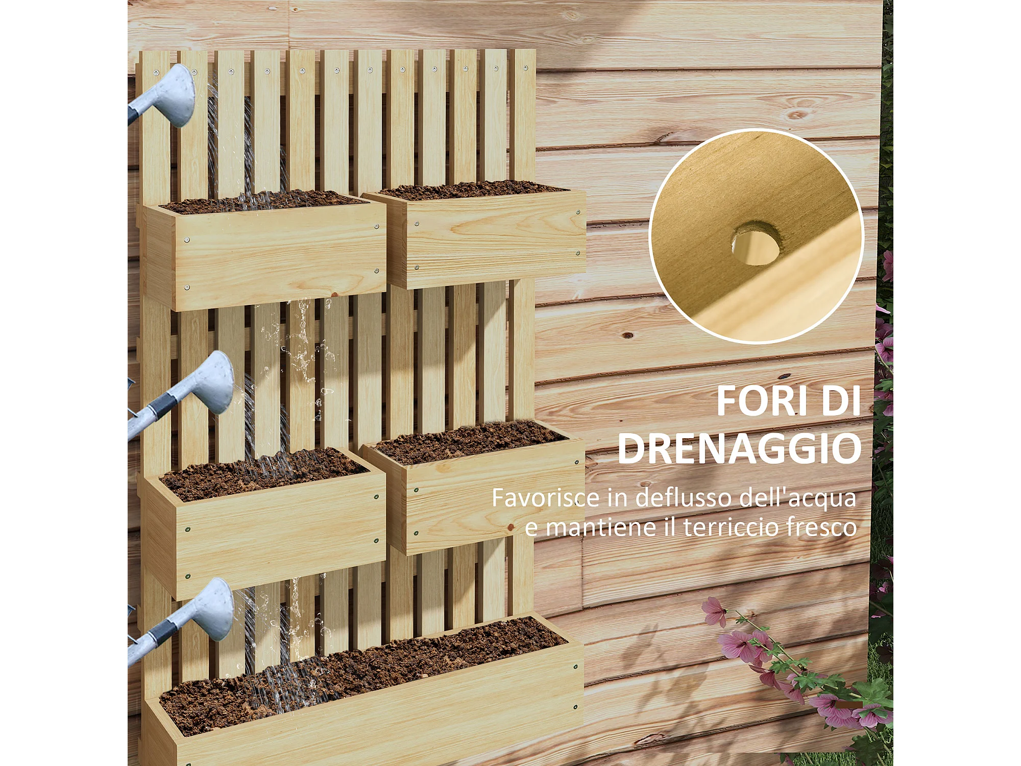 Fioriera con grigliato e fori di drenaggio in legno di abete
