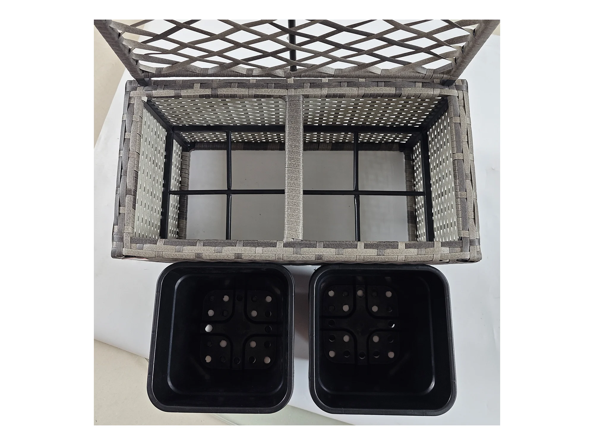 Fioriera con grigliato per rampicanti e 2 vasi in rattan pe grigio