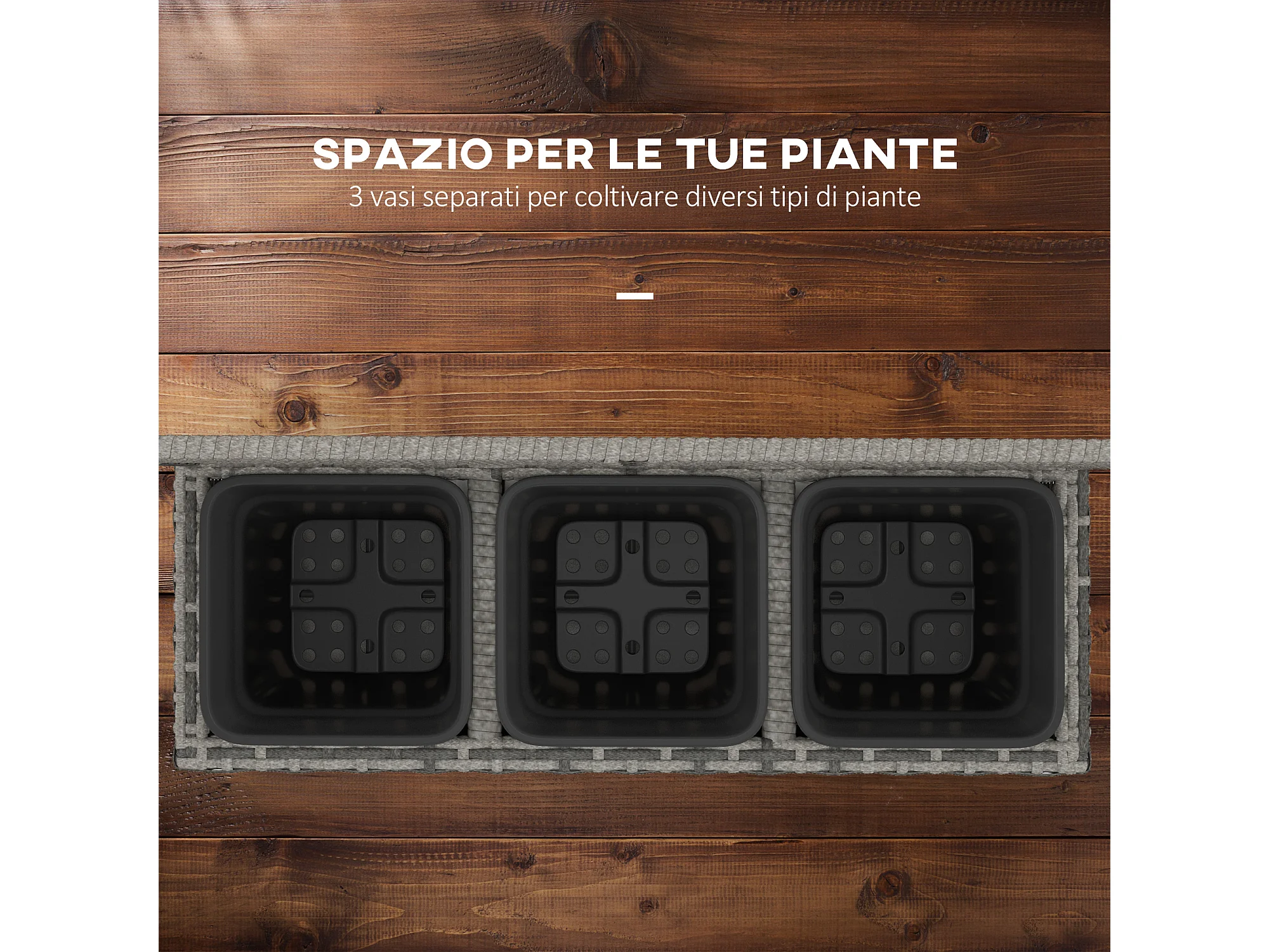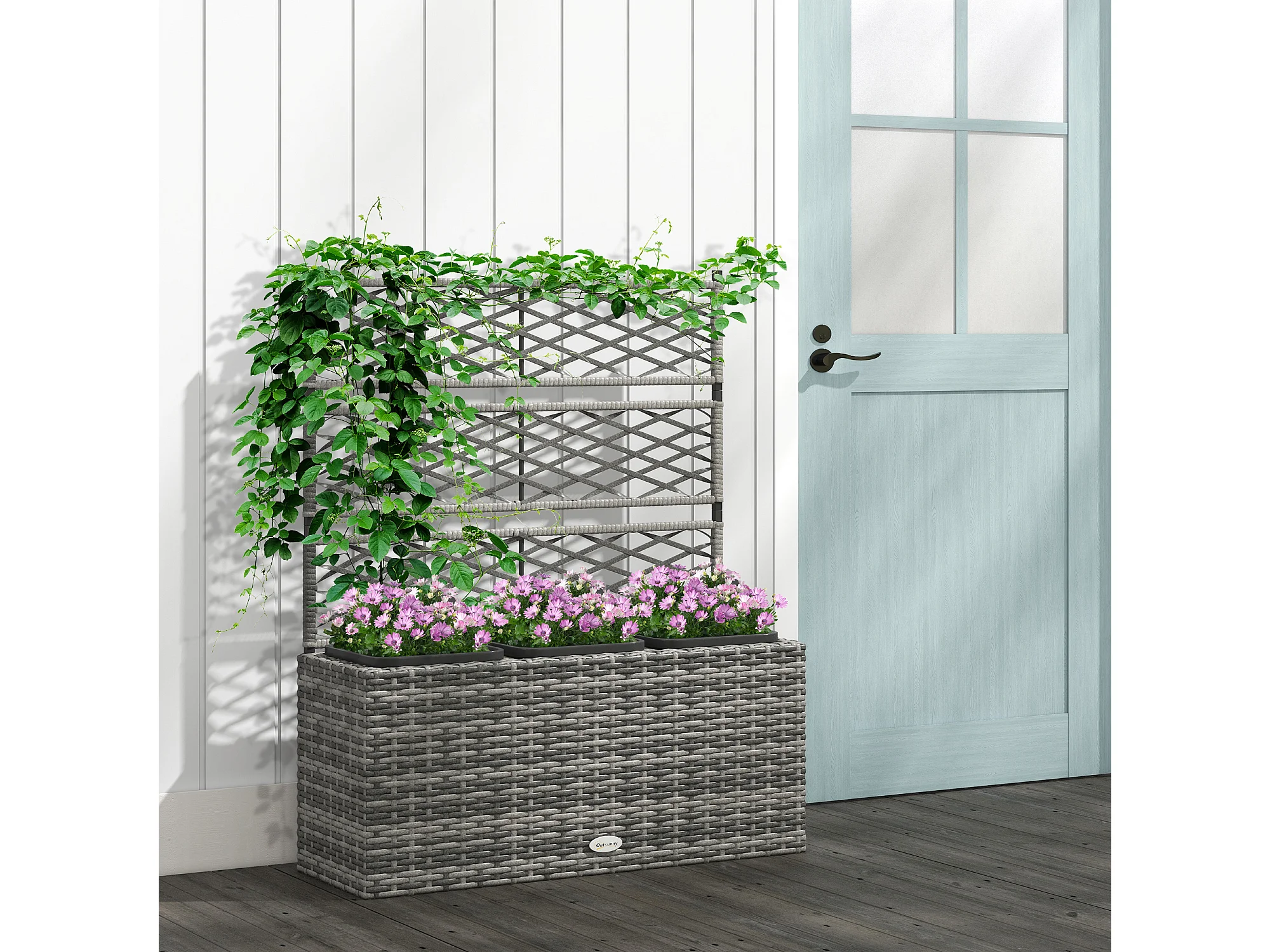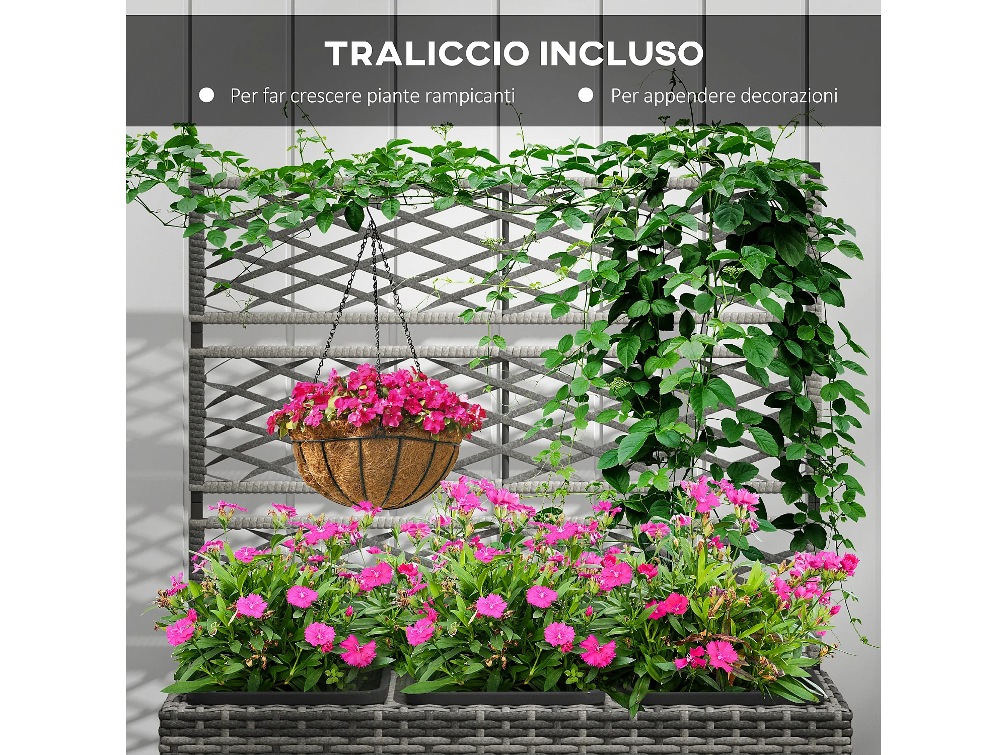Fioriera con grigliato per rampicanti e 3 vasi in rattan pe grigio