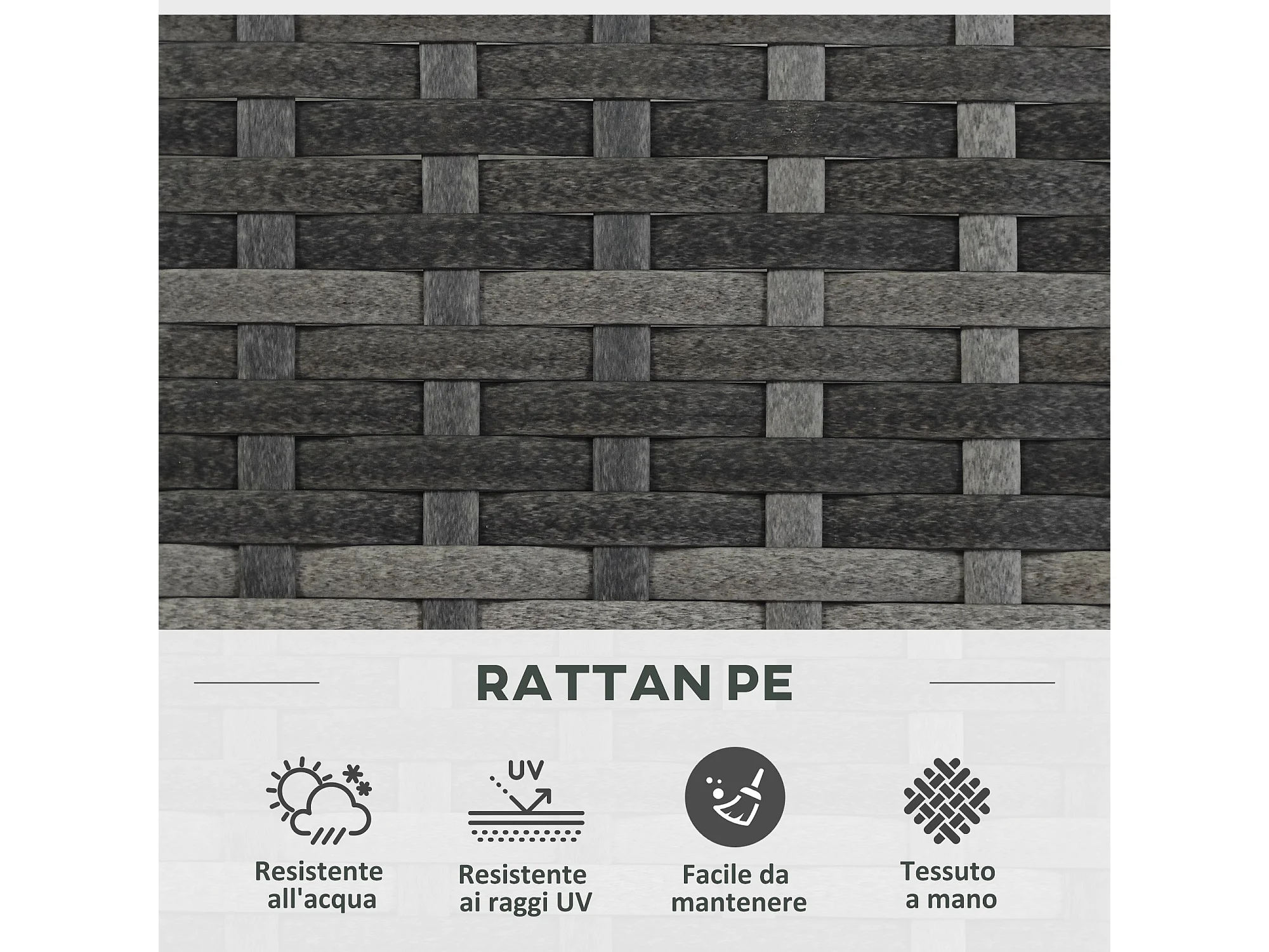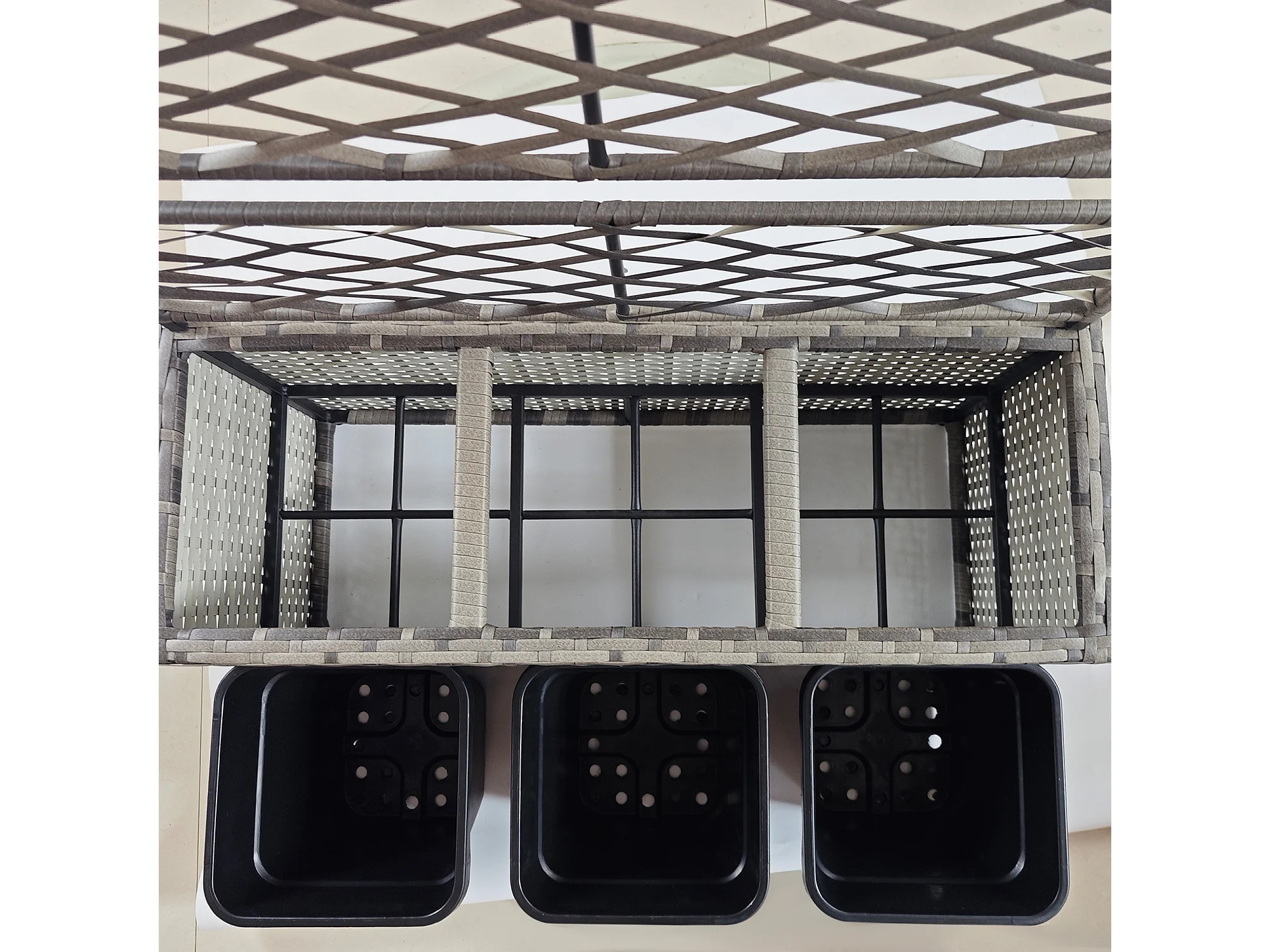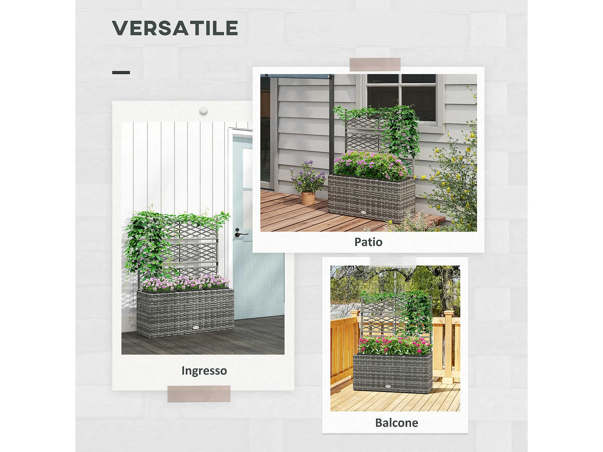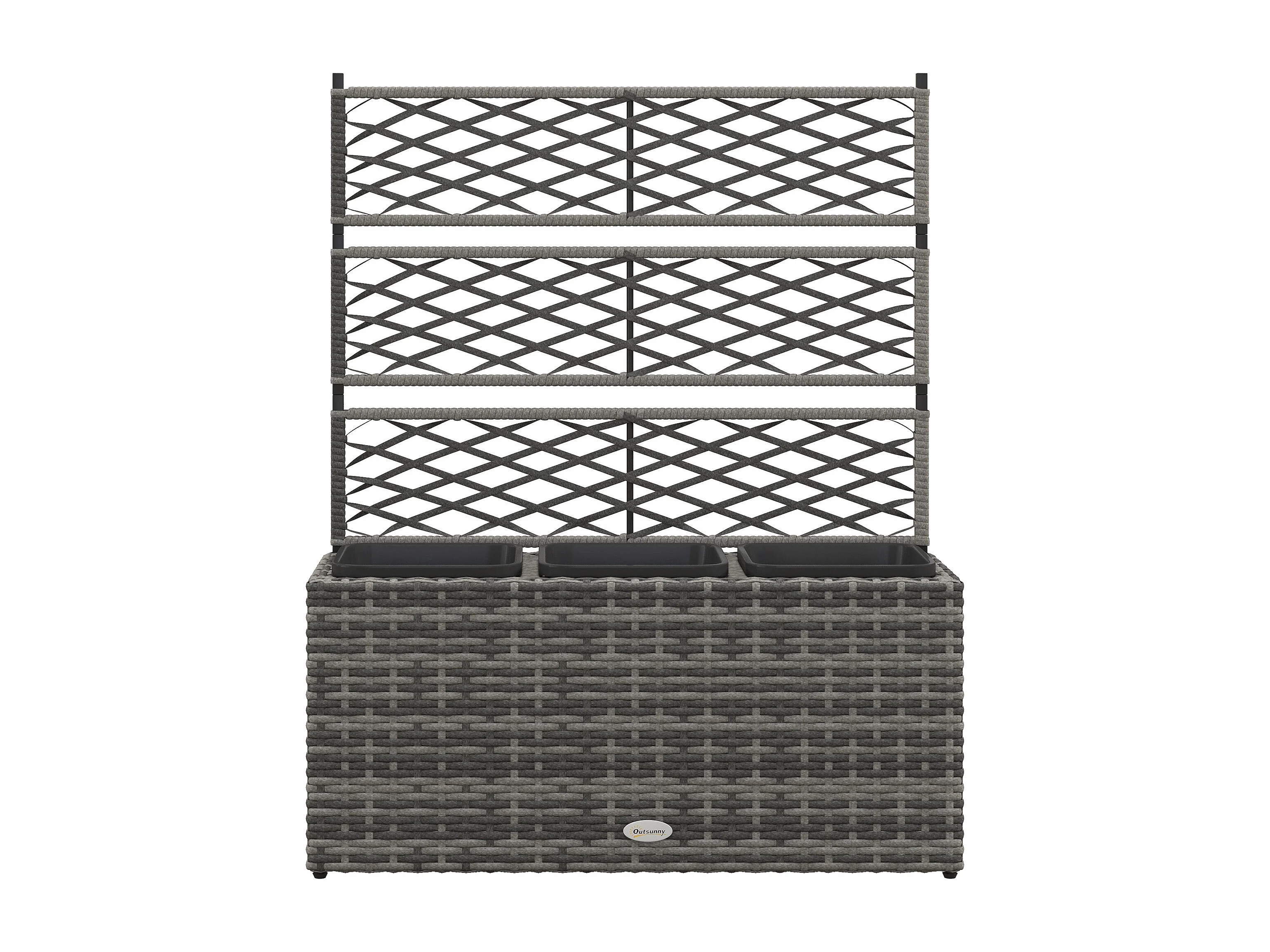 Fioriera con grigliato per rampicanti e 3 vasi in rattan pe grigio