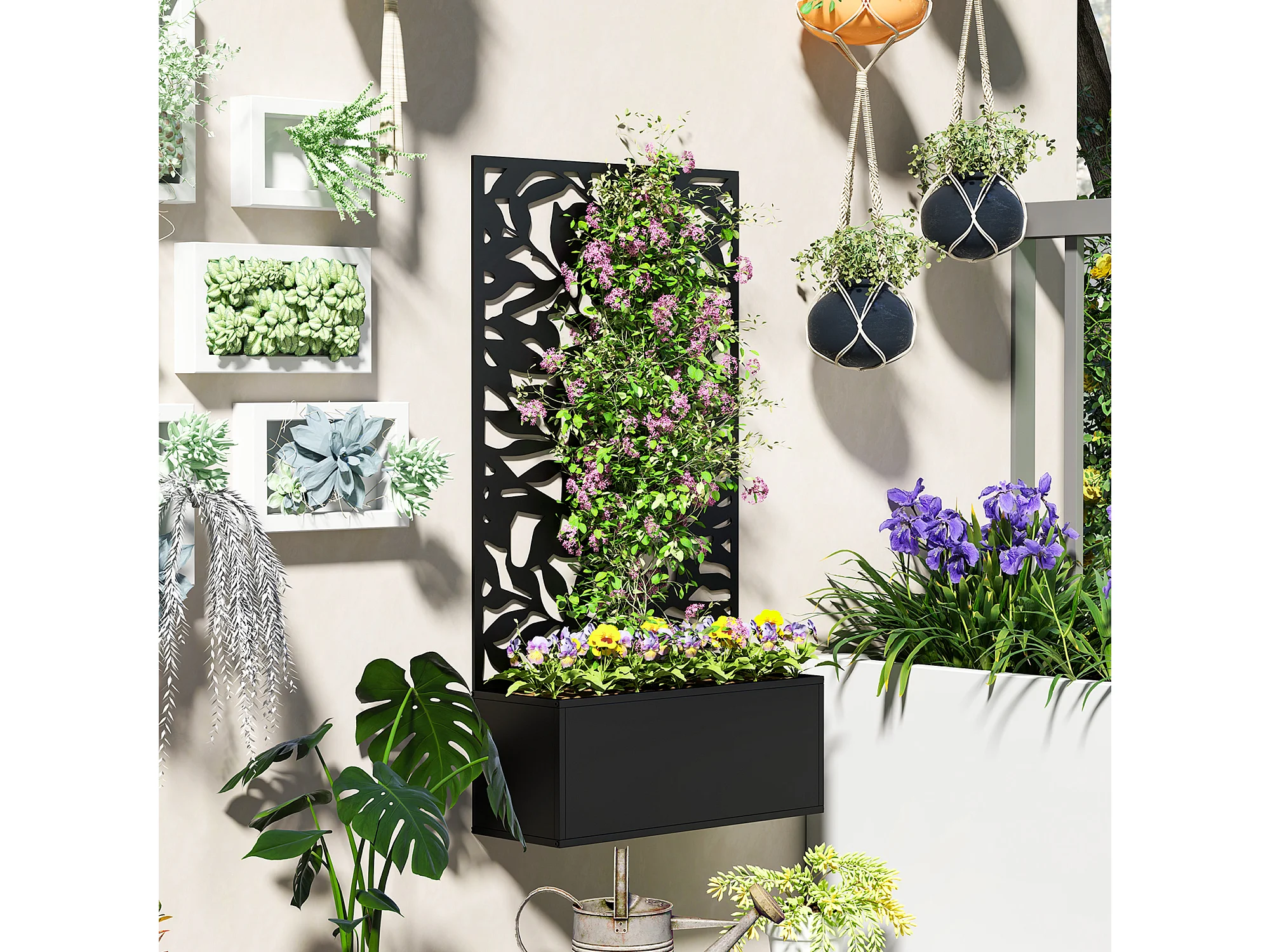 Fioriera con spalliera per rampicanti sospesa e da terra nero