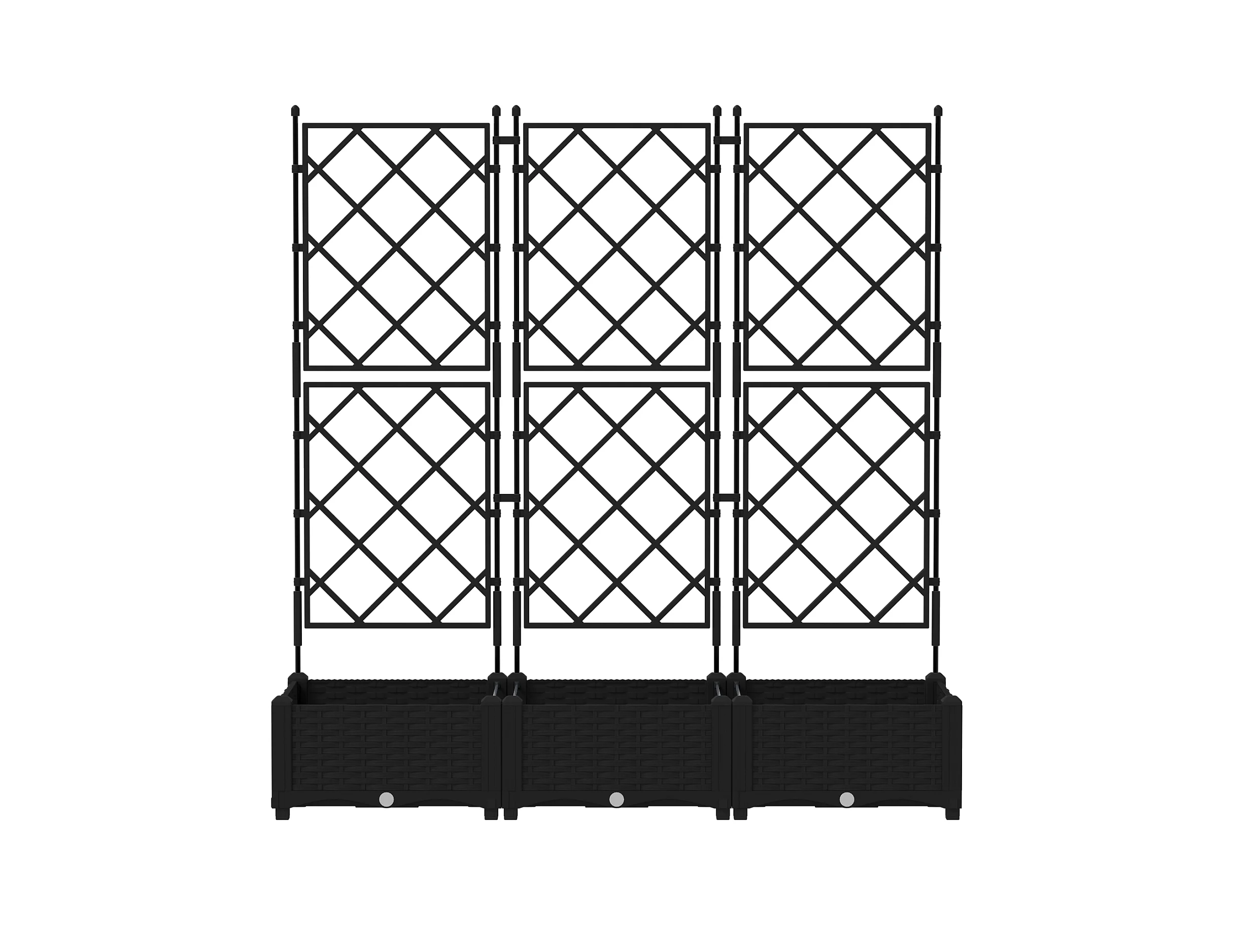 Vaso da giardino con traliccio 3 pezzi Nero 120x40x143 cm