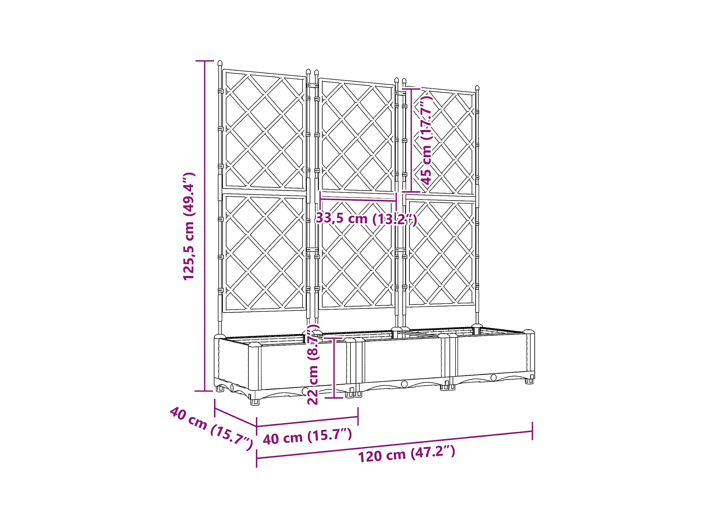 Fioriera con traliccio nero 120x120x121,5 cm PP