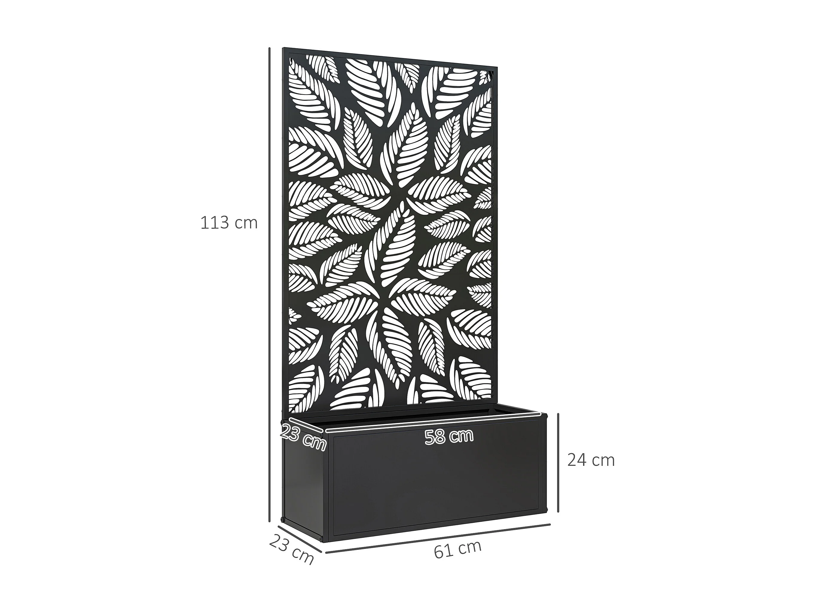 Fioriera rialzata con spalliera decorativa in metallo nero
