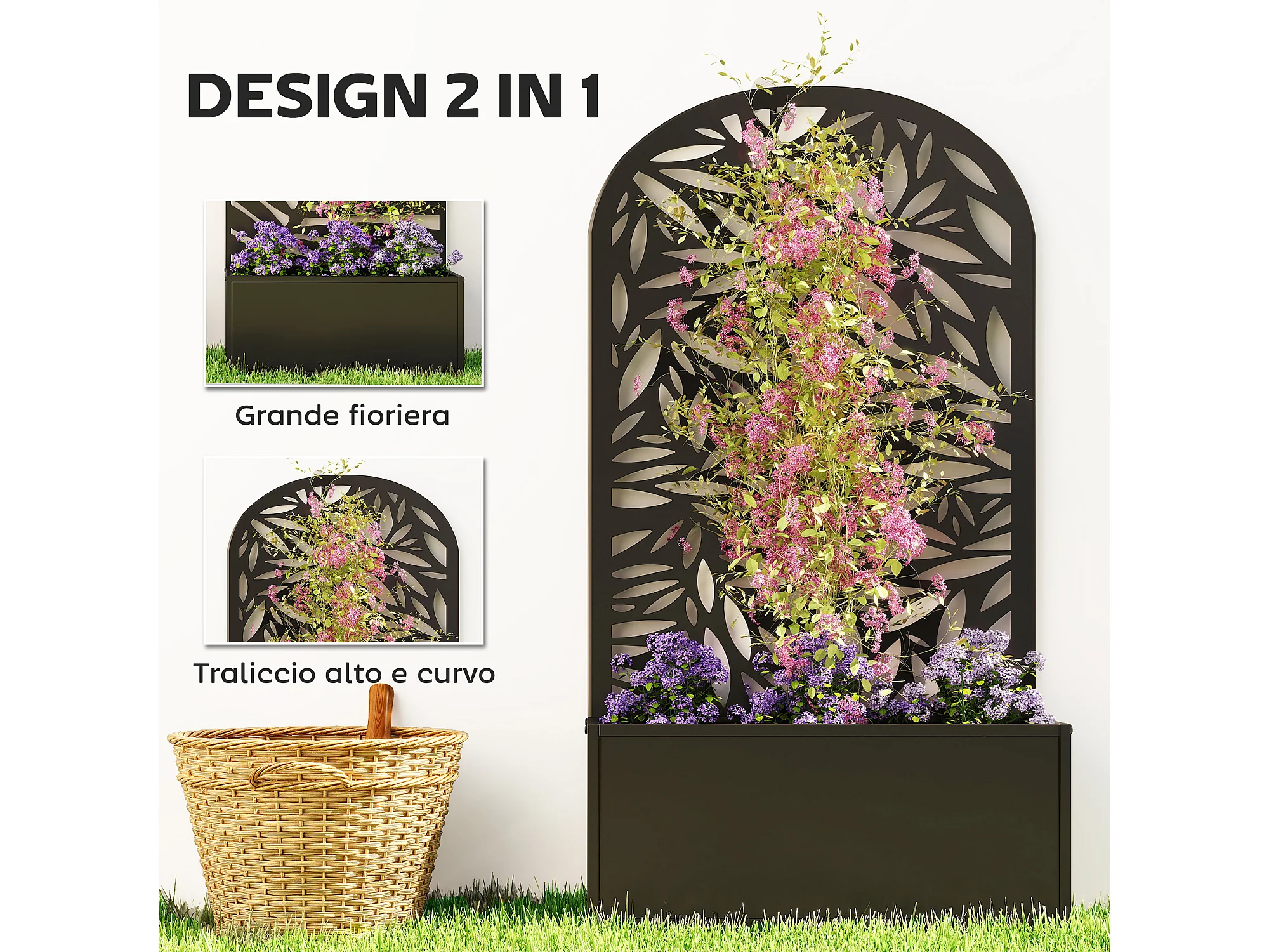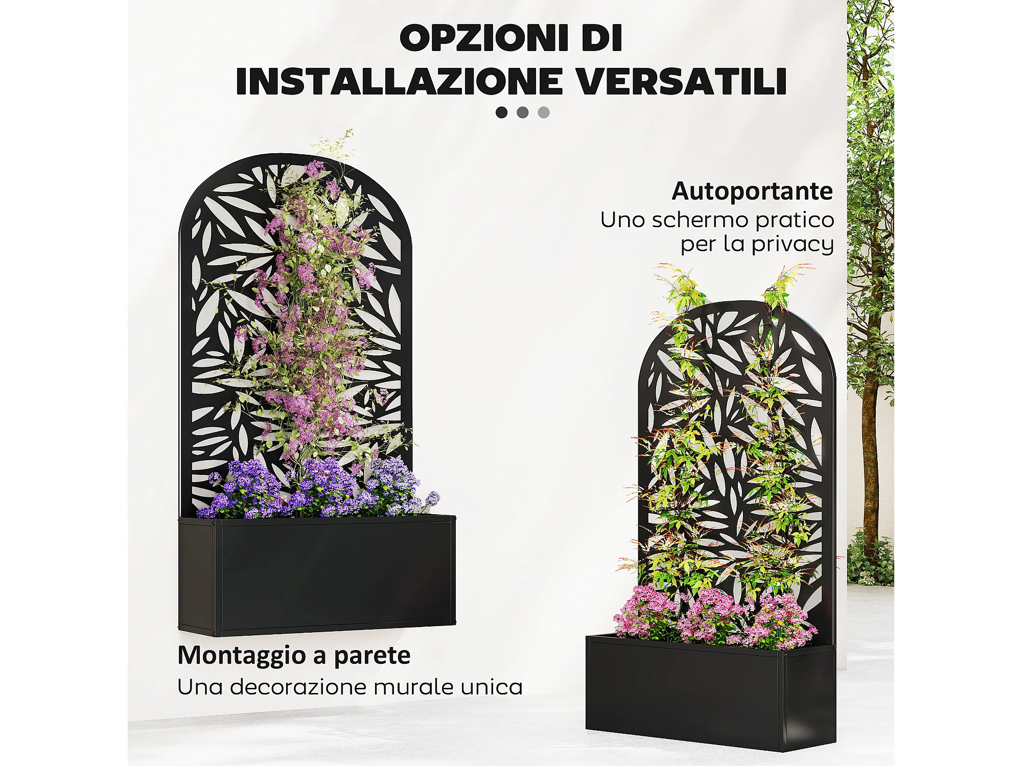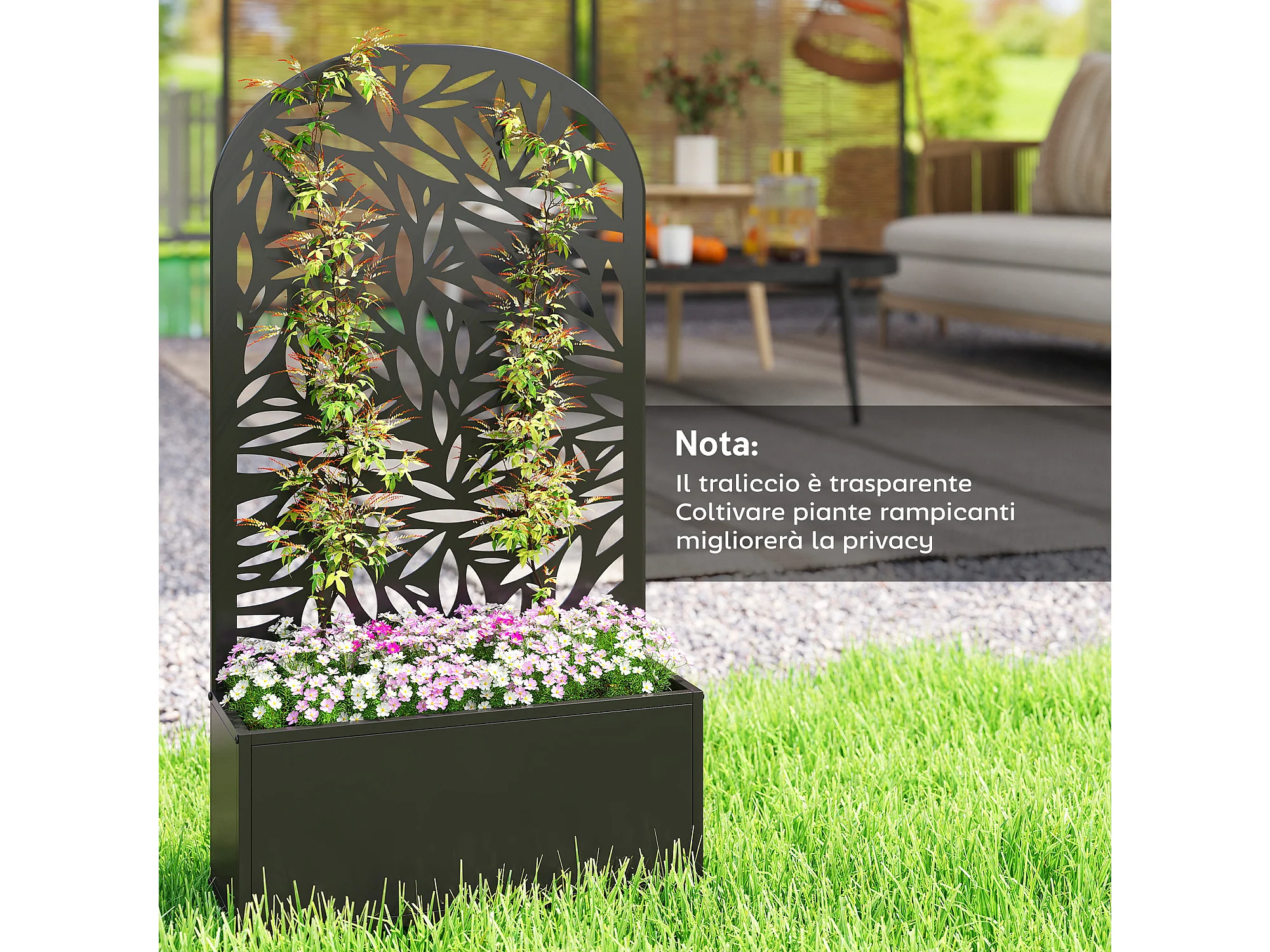 Fioriera con traliccio per rampicanti in metallo 61x23x113 cm nero
