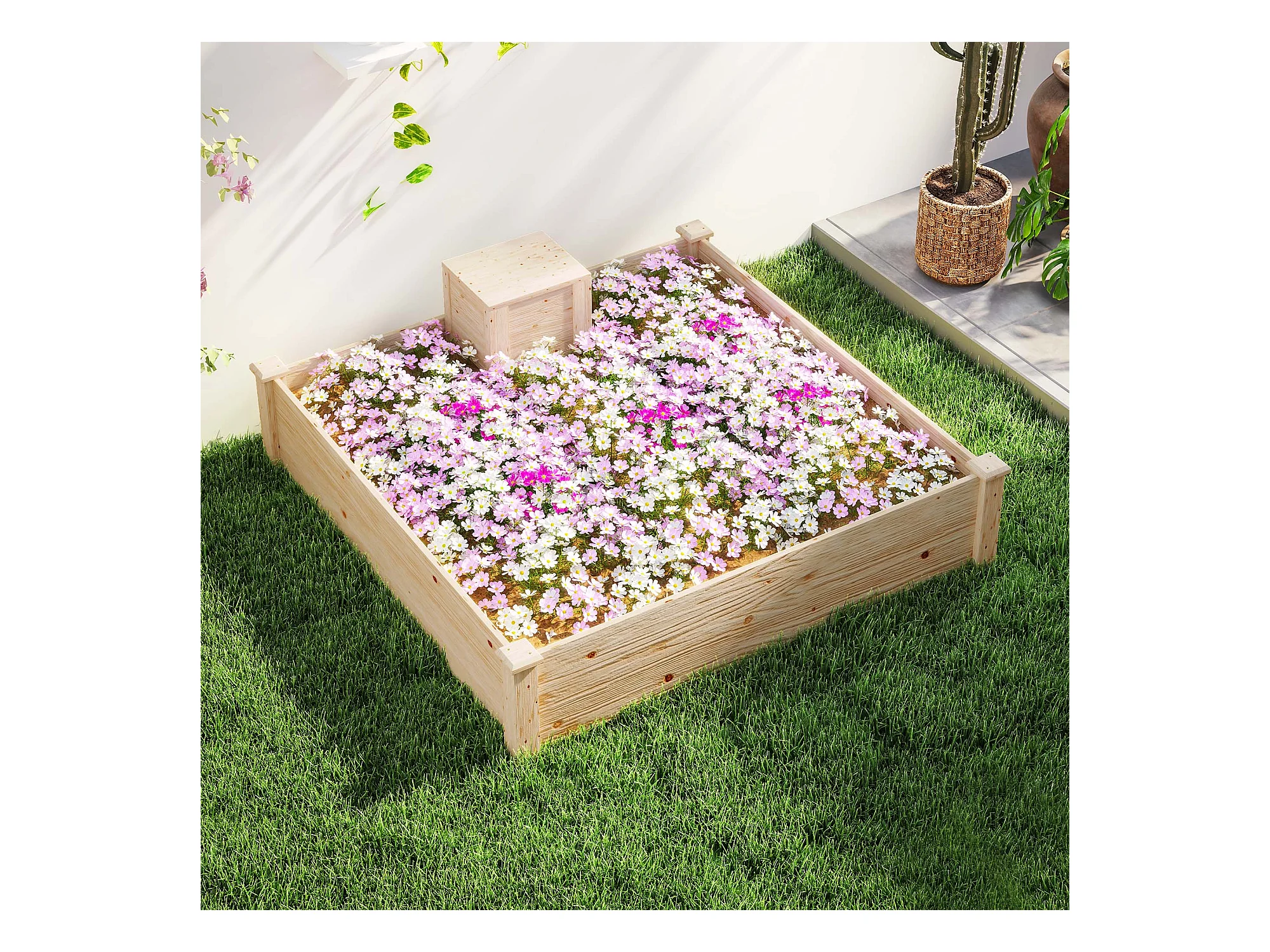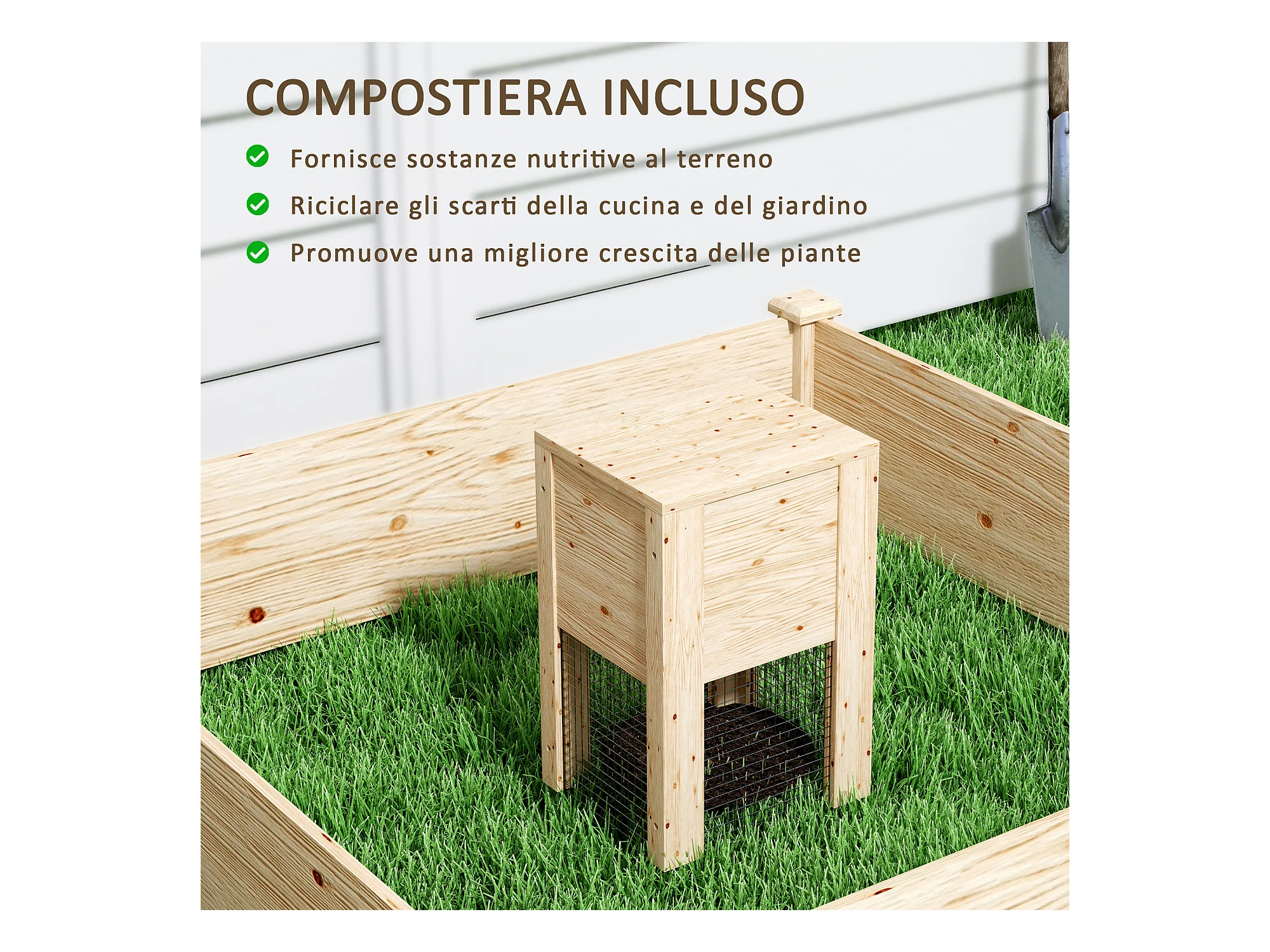 Fioriera da esterno con compostiera e fondo aperto in legno di abete