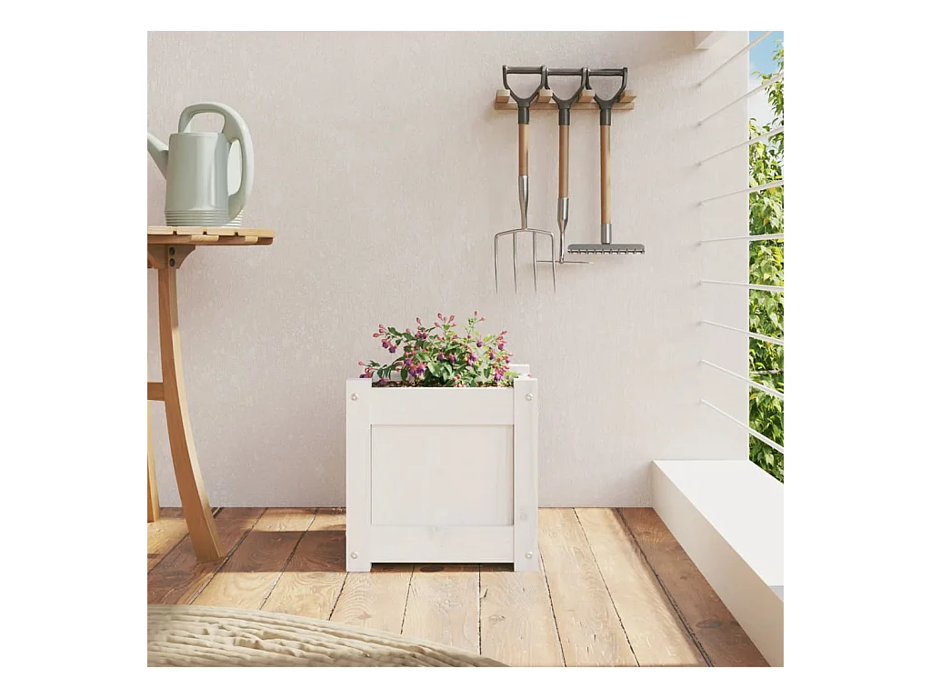 Fioriera da Giardino Bianca 31x31x31 cm Legno Massello di Pino