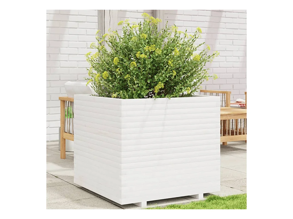 Fioriera da Giardino Bianca 50x50x72 cm Legno Massello di Pino