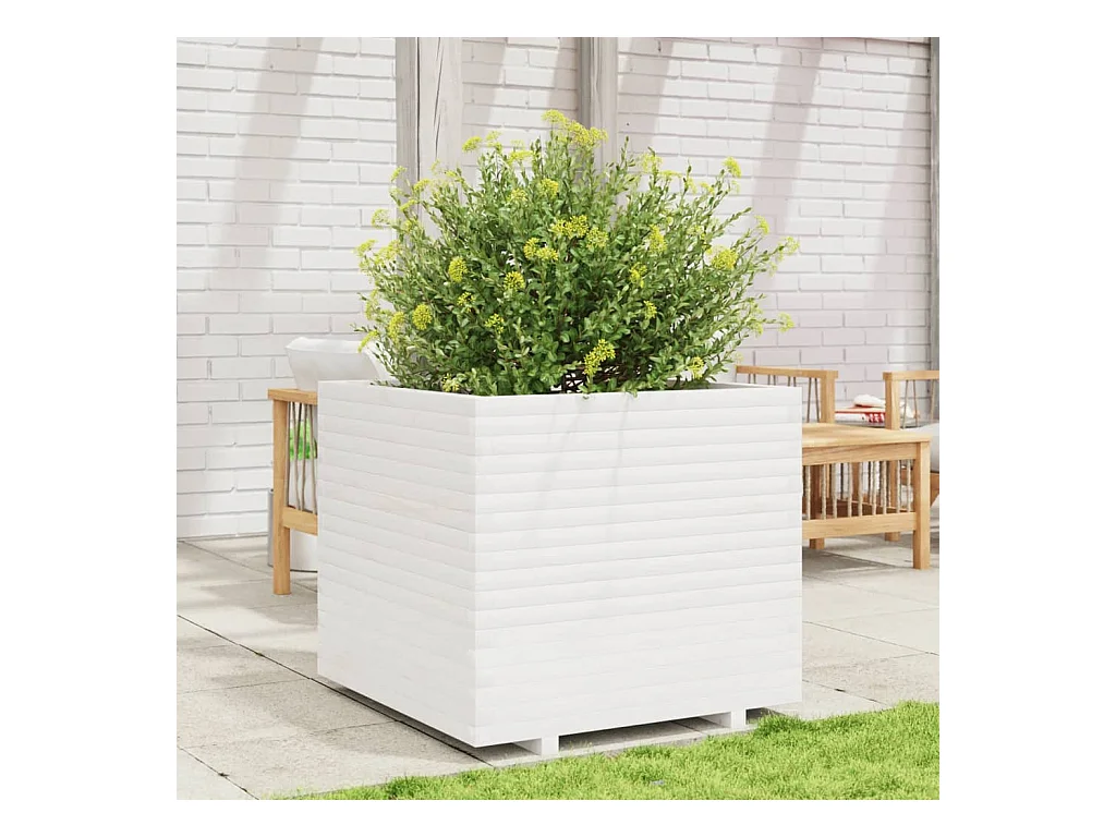 Fioriera da Giardino Bianca 80x80x72 cm Legno Massello di Pino