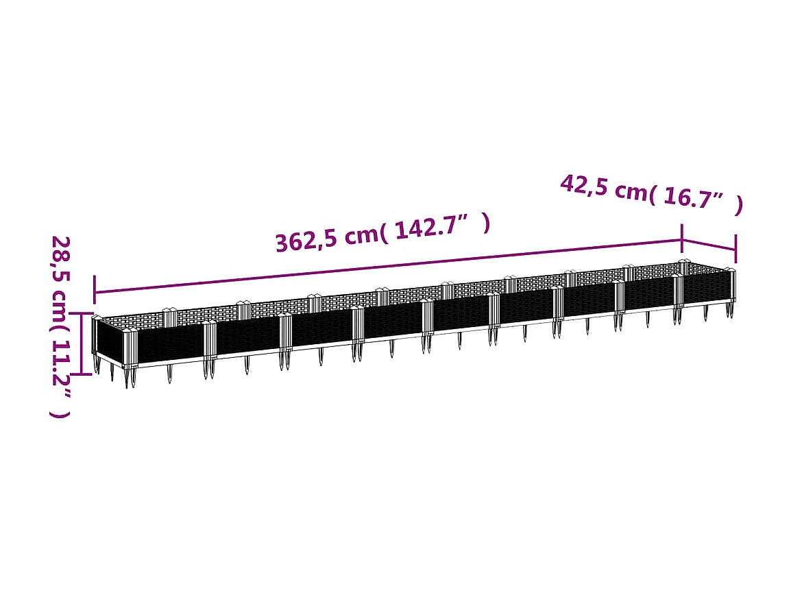 Fioriera da Giardino con Picchetti Marrone 362,5x42,5x28,5cm PP