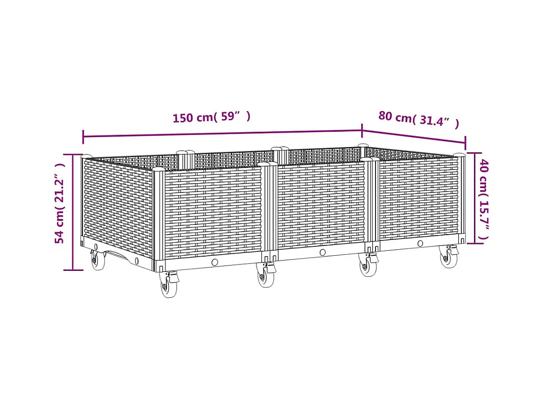 Fioriera da Giardino con Ruote Grigio Blu 150x80x54 cm in PP