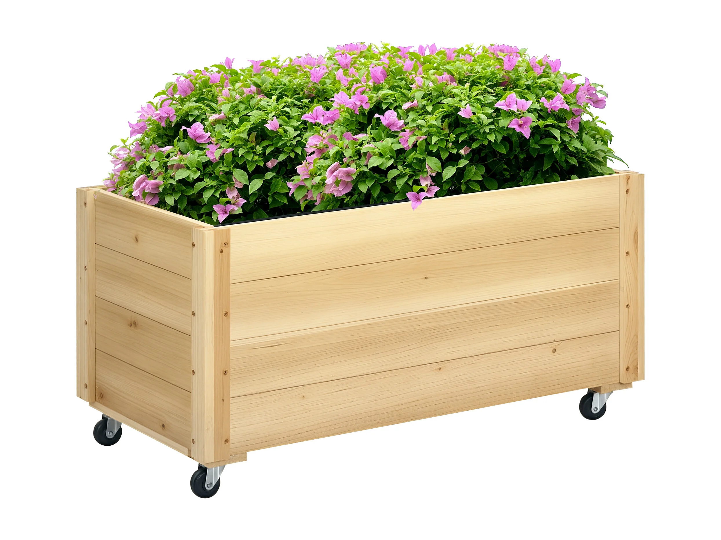 Fioriera da giardino in legno di abete con foro di drenaggio e fodera