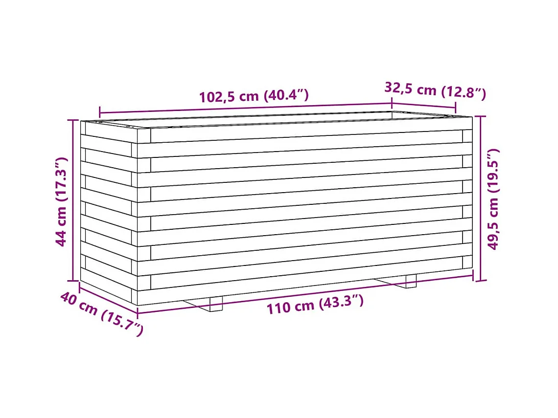 Fioriera da Giardino 150x100 cm in Legno Massello di Pino