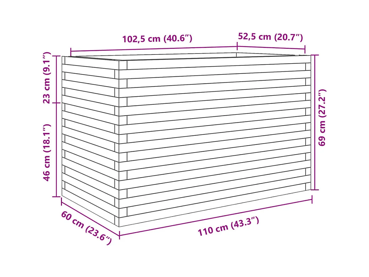 Fioriera da Giardino 110x60x45,5 cm in Legno Massello di Pino
