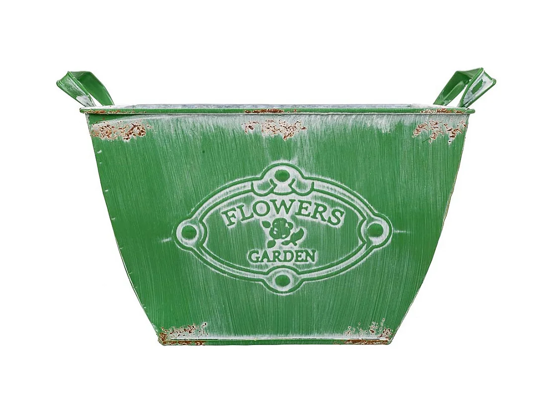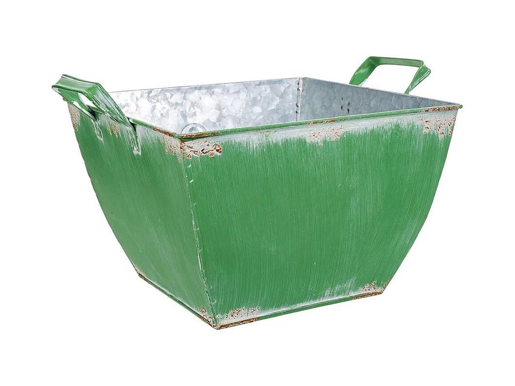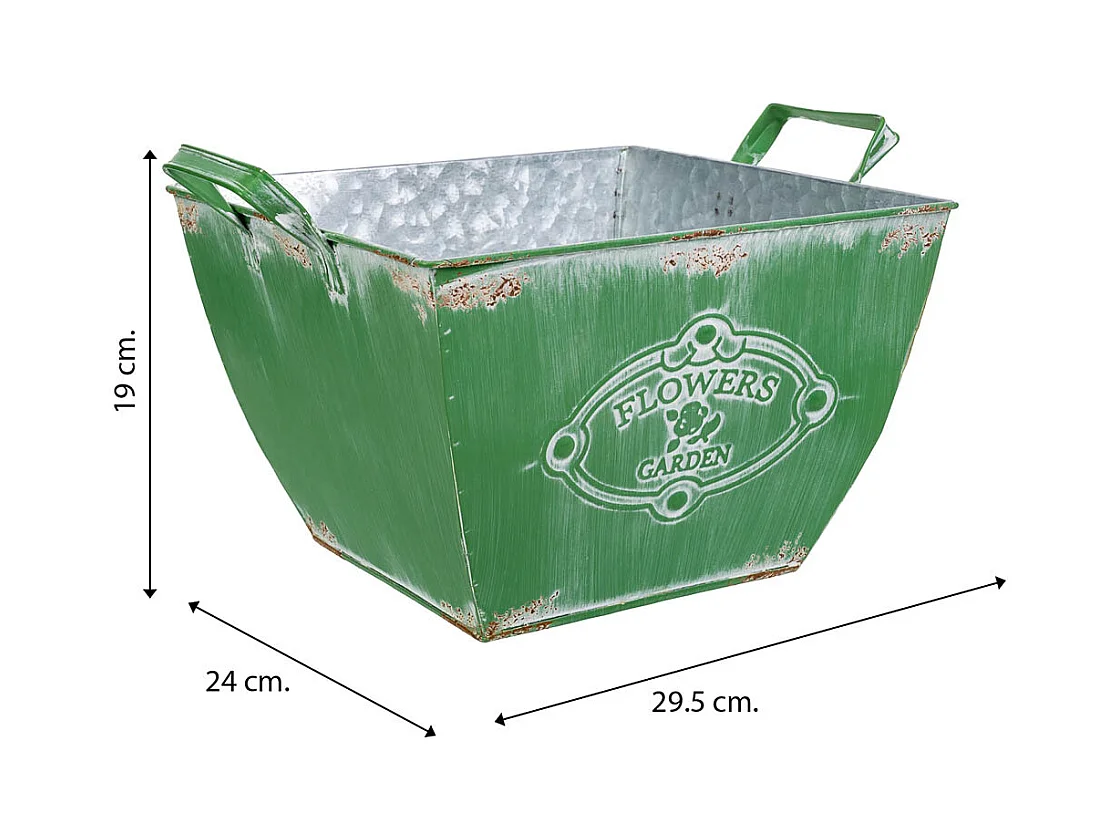 Fioriera in metallo verde 35/29,5x19,5x14,5/17,5hb:22,5x13