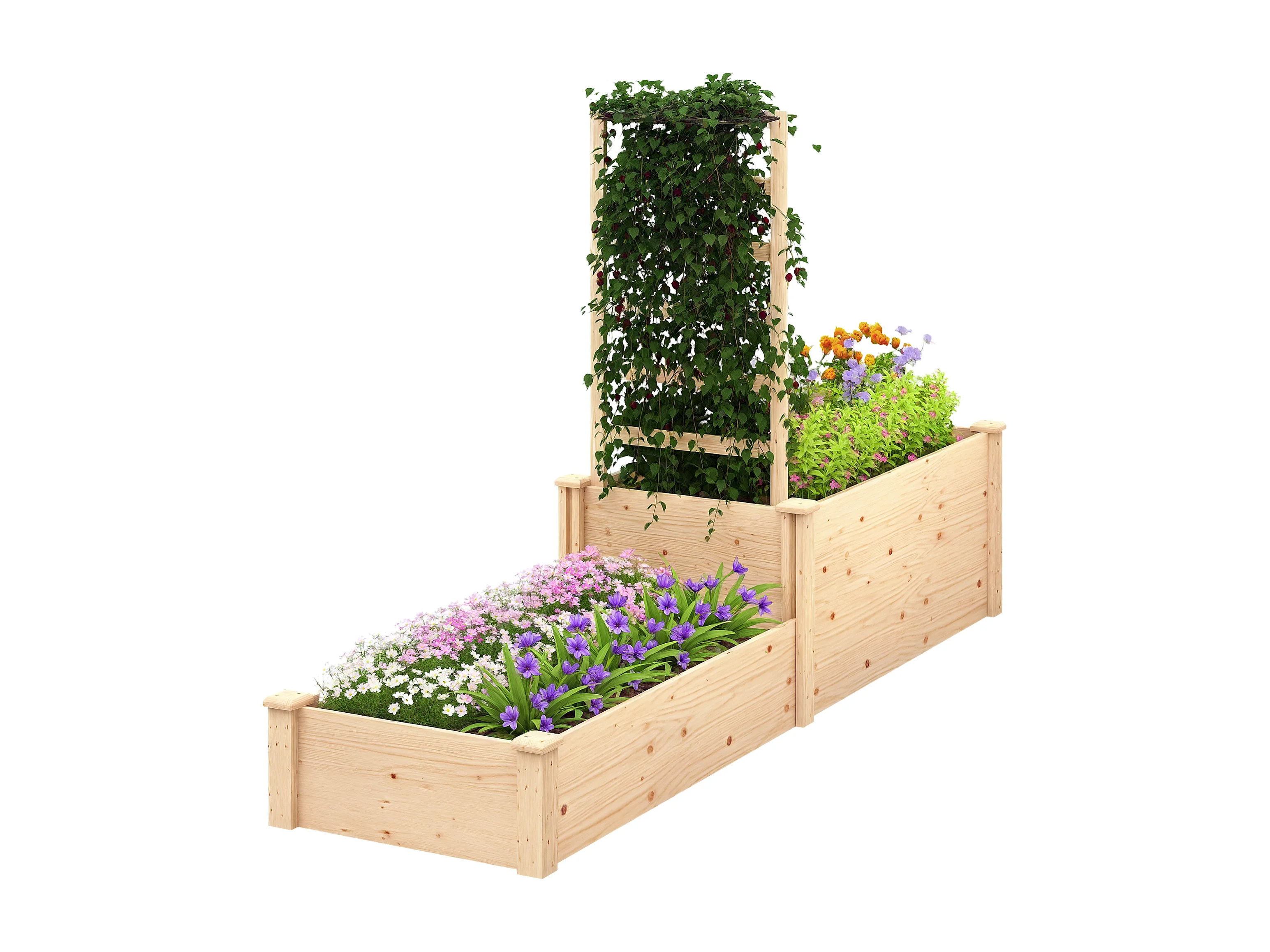Letto per orto con 3 tralicci e 2 fioriere con fondo aperto in legno
