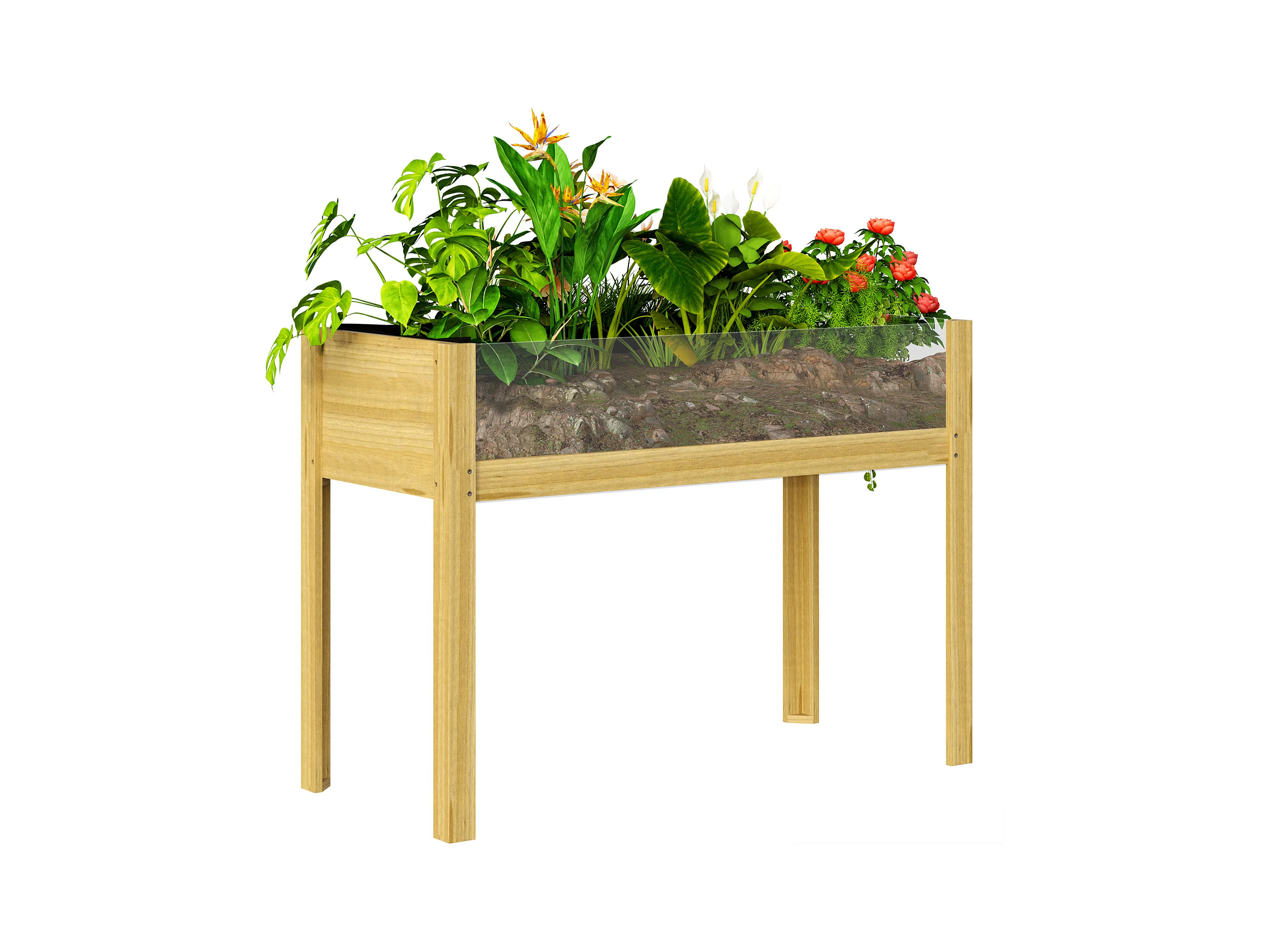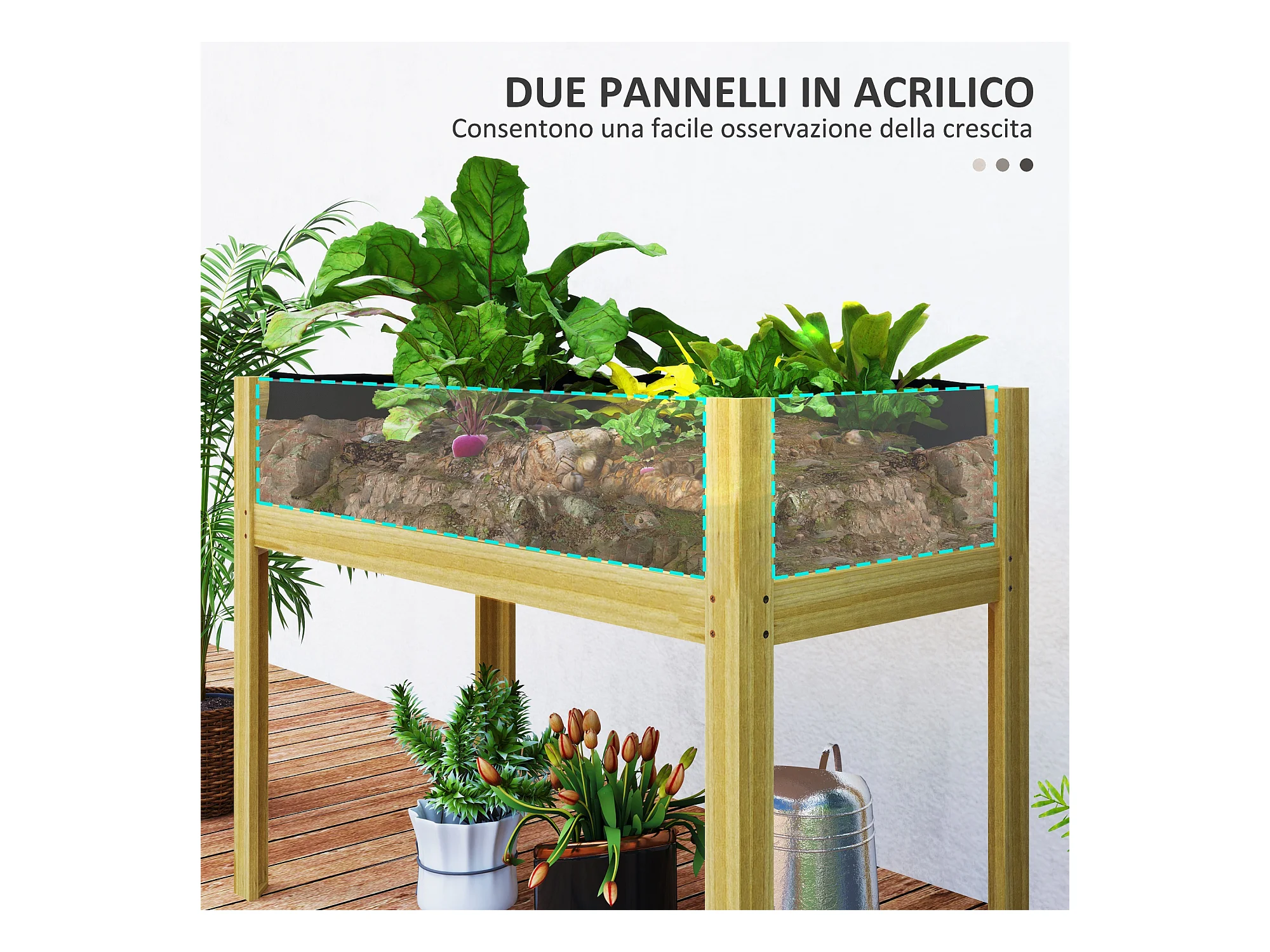 Fioriera rialzata in legno con gambe e ripiano inferiore