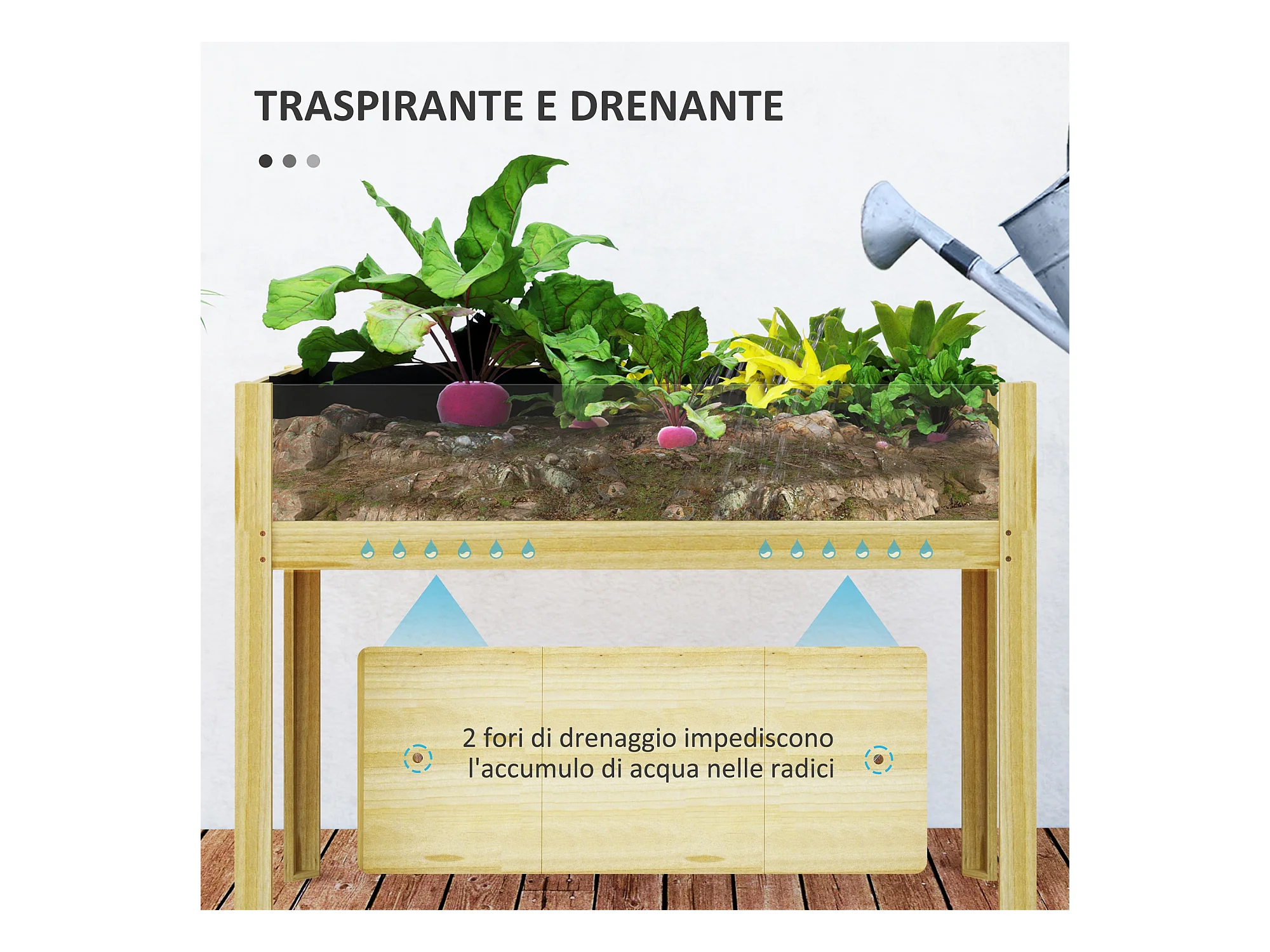 Fioriera rialzata da 118l con 2 fori di drenaggio in legno 110x50x80cm