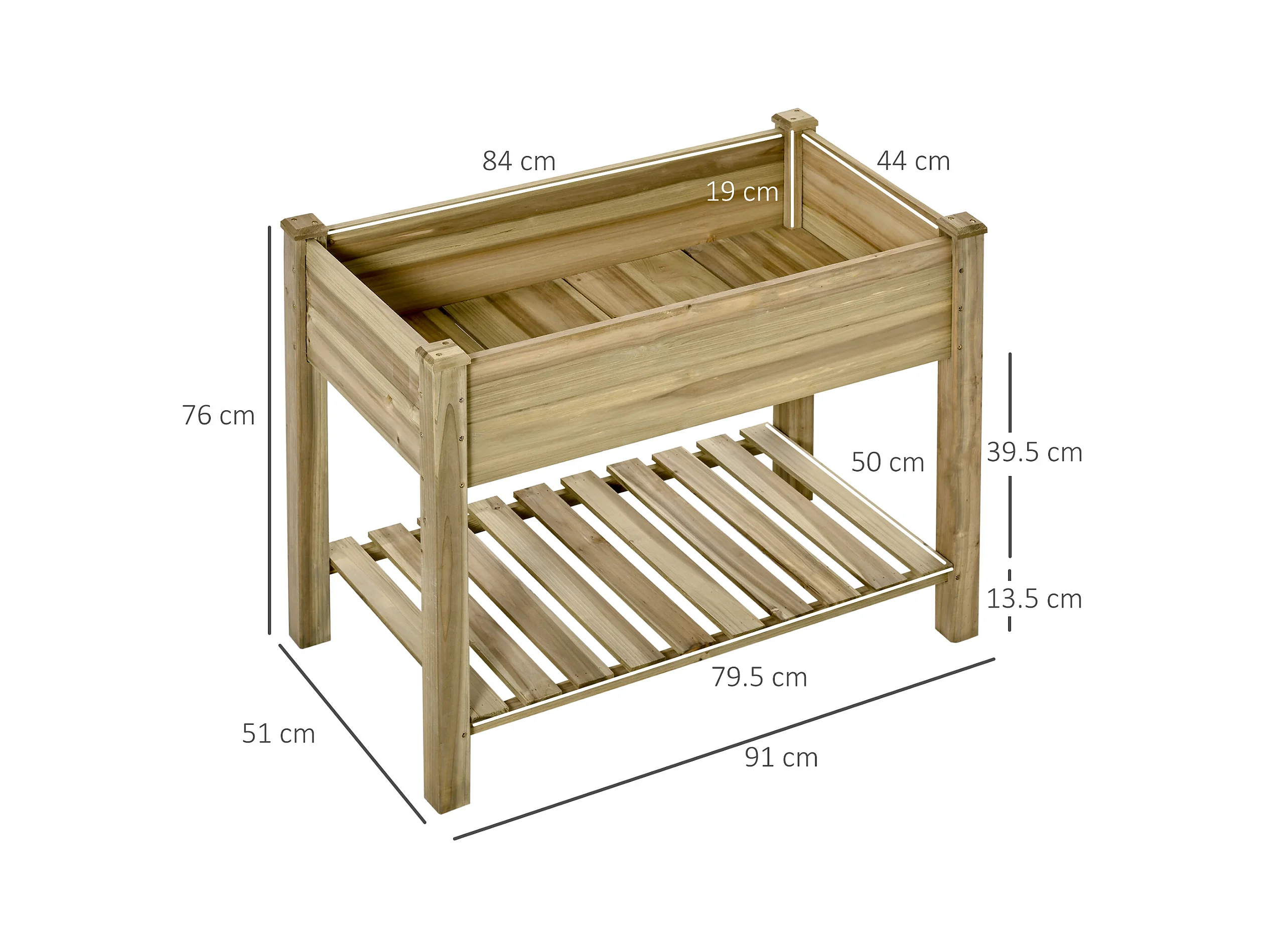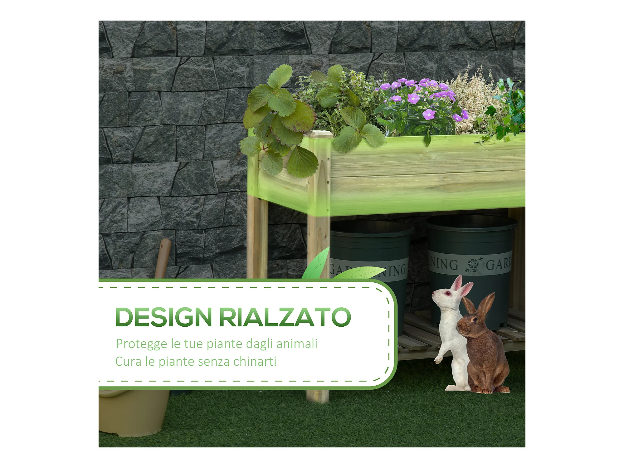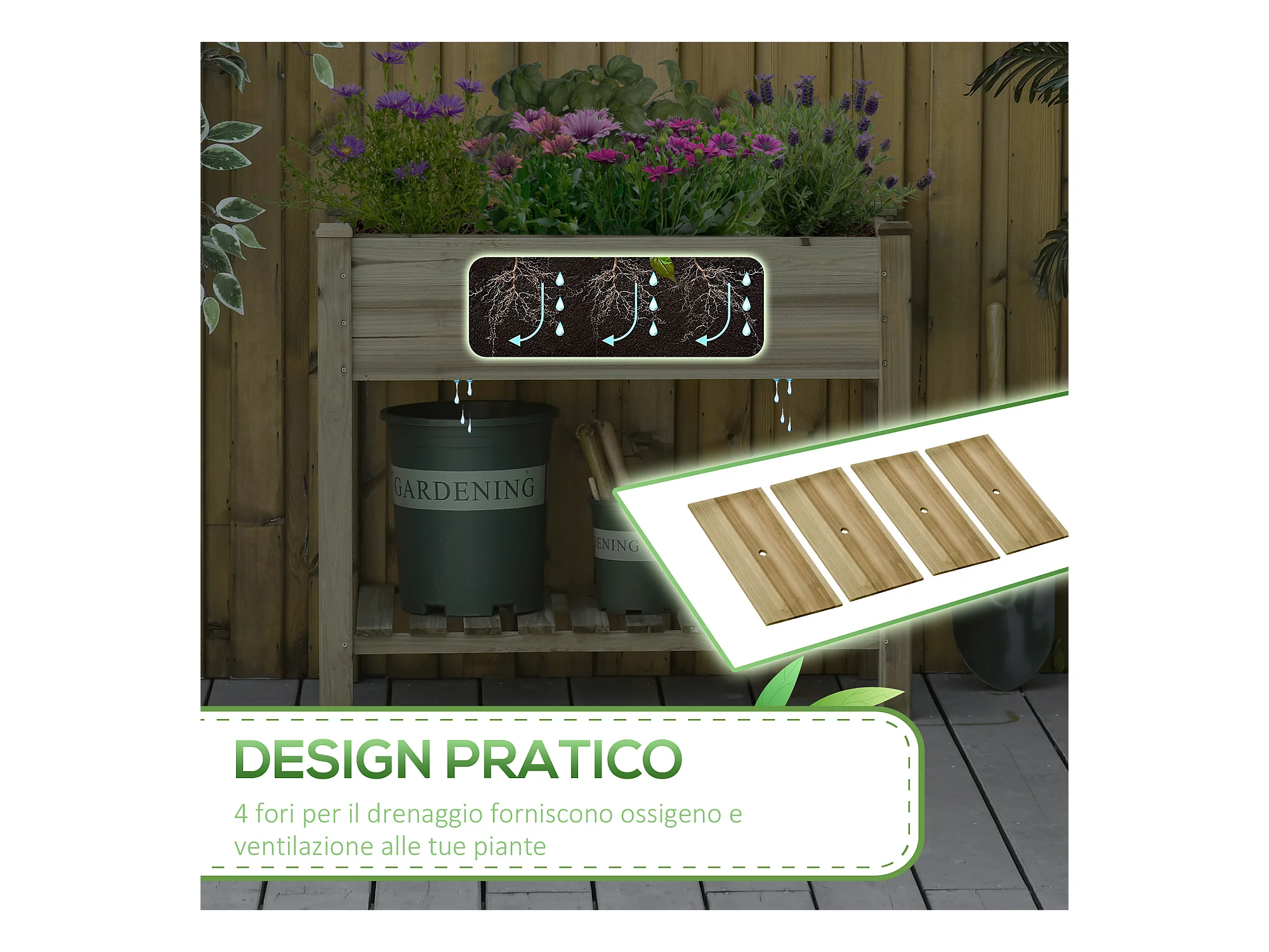 Fioriera rialzata in legno con gambe e ripiano inferiore