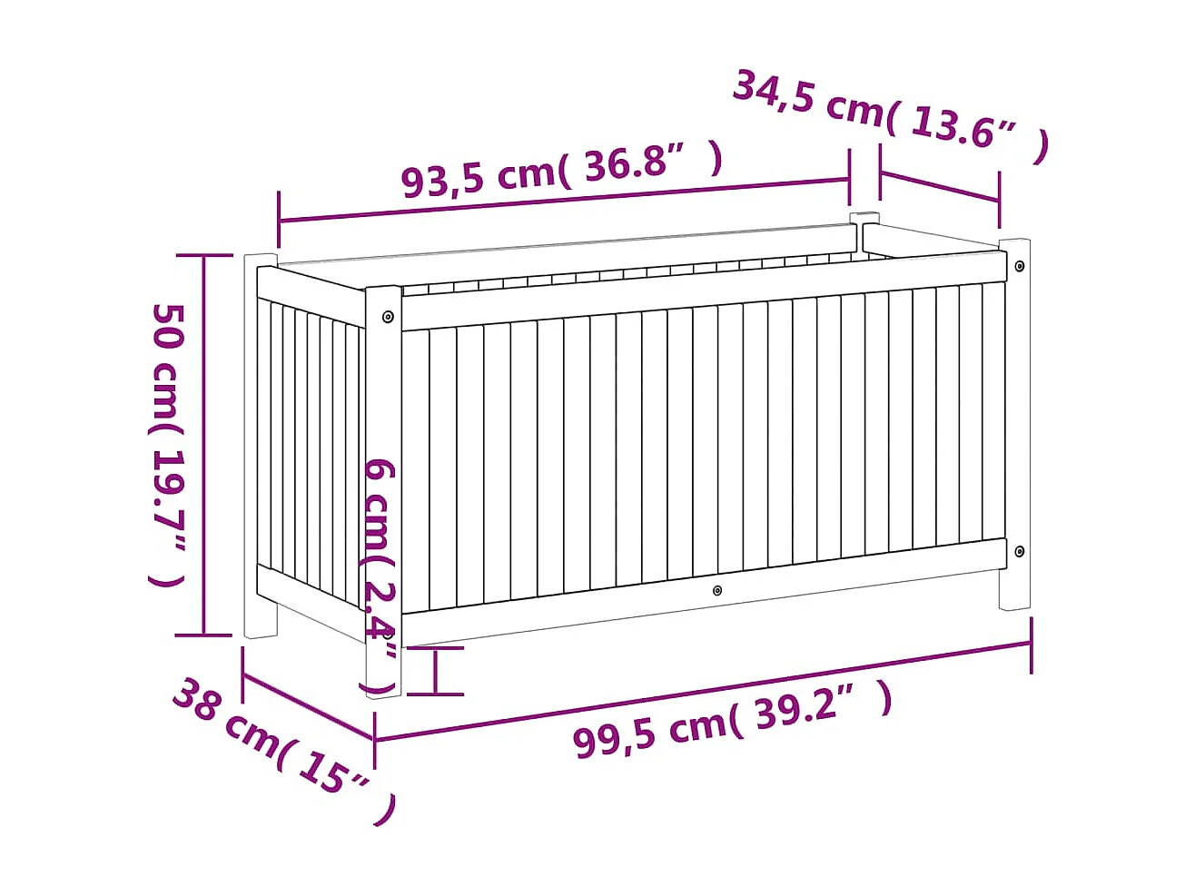 Aiuola rialzata/fioriera con rivestimento 99,5 x 38 x 50 cm legno massello di acacia marrone 02_0038147