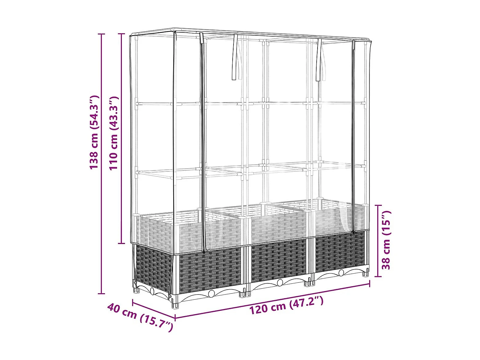 Fioriera rialzata per aiuola fioriera per terrazza giardino rialzato con copertura effetto rattan 120 x 40 x 138 cm Marrone 02_0038739