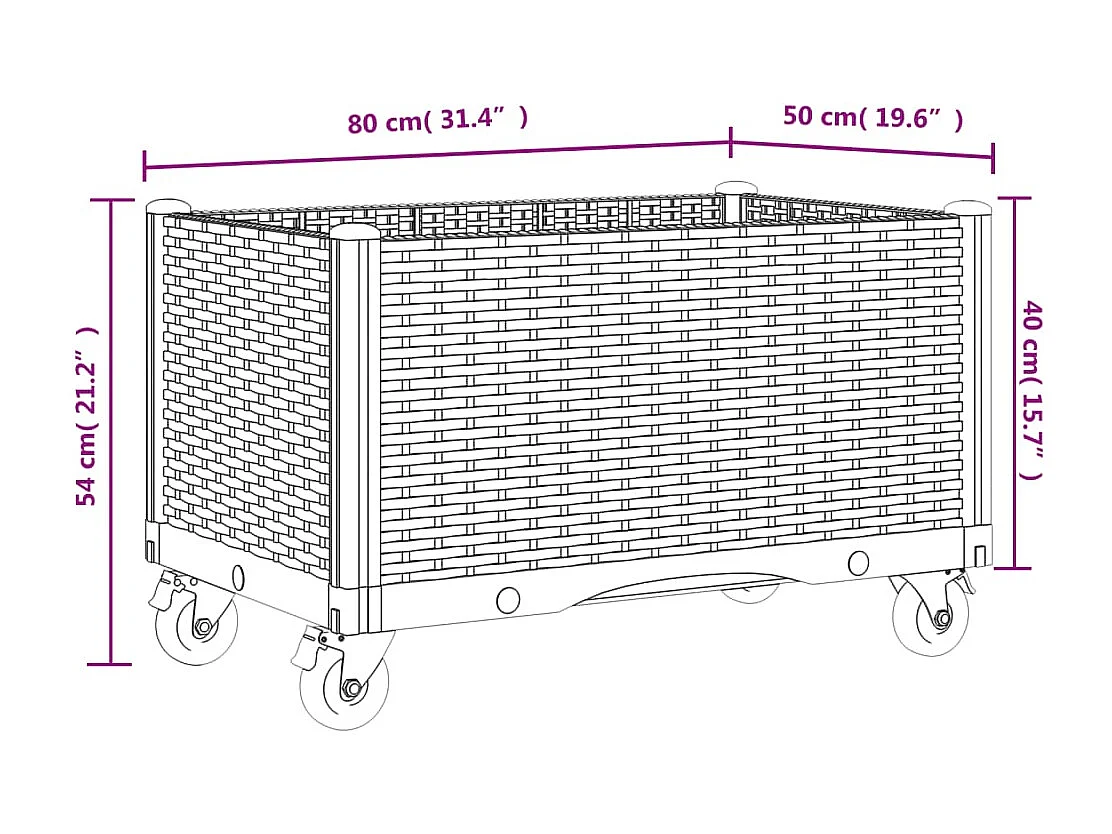 Fioriera rialzata per terrazza giardino su ruote 80 x 50 x 54 cm PP nero 02_0038842