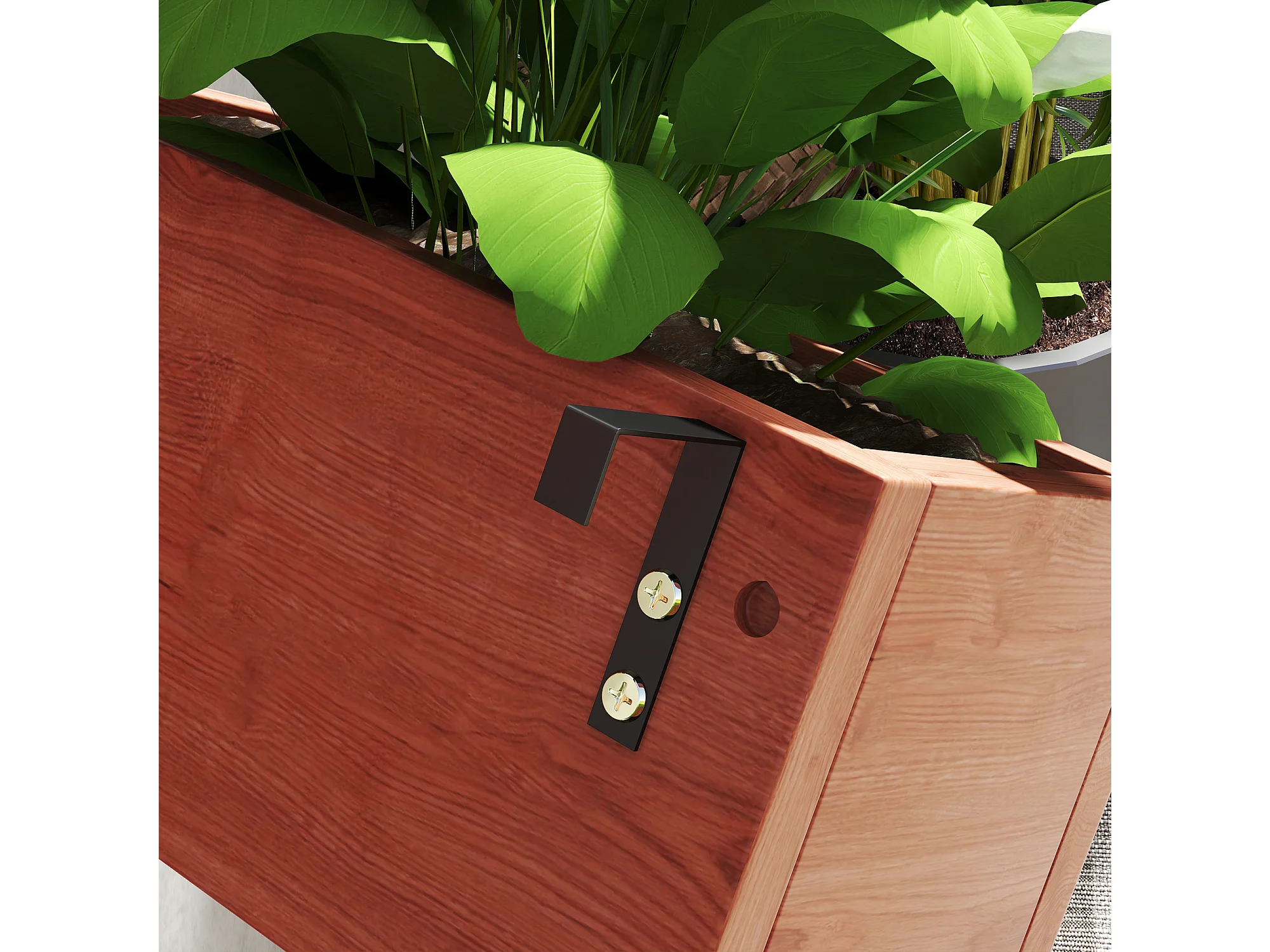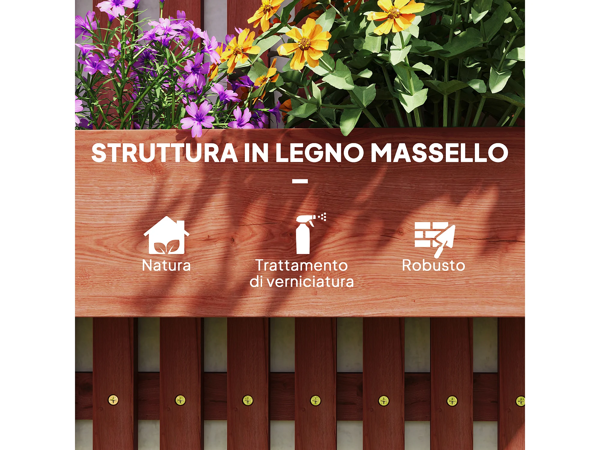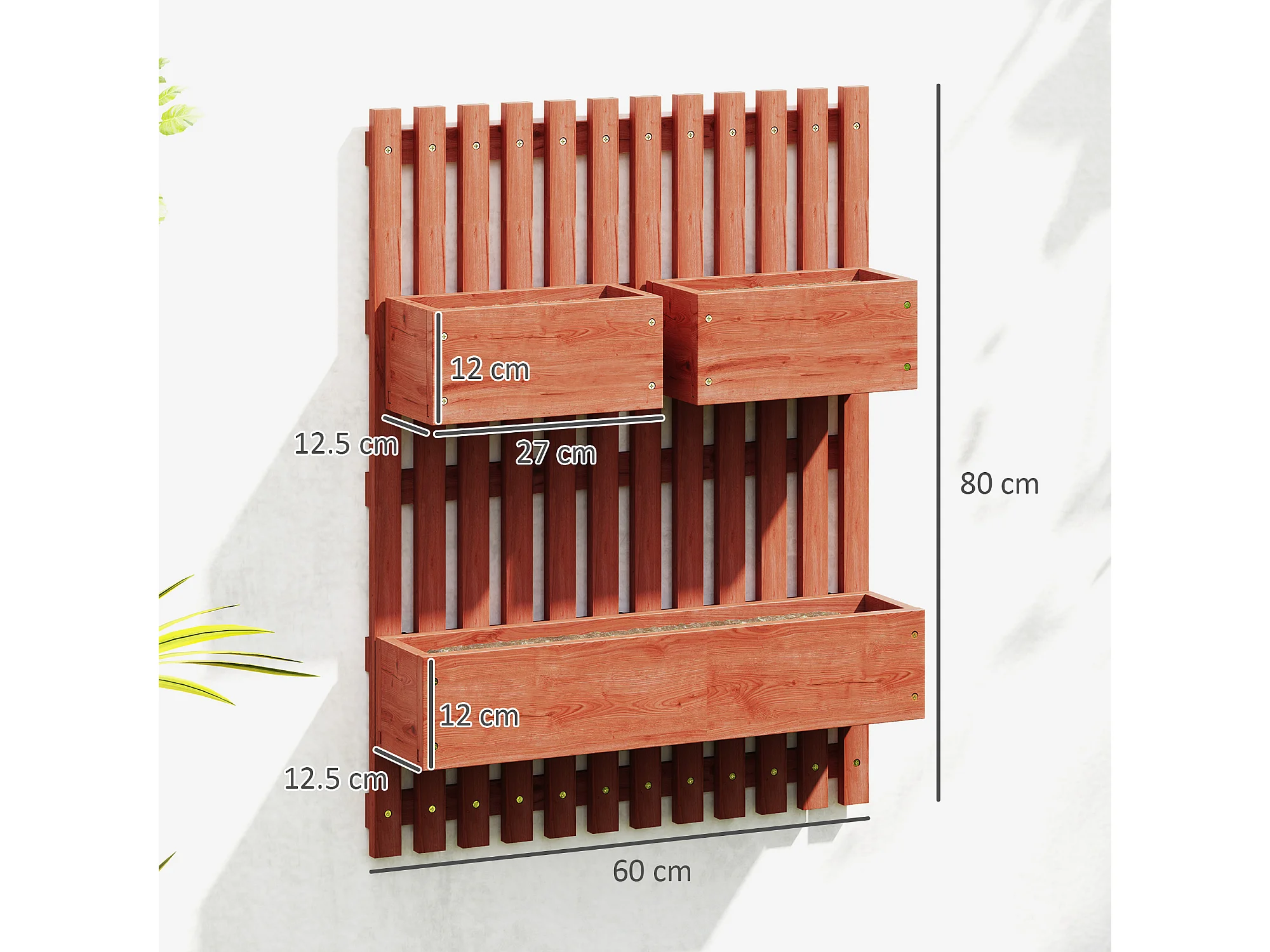 Fioriera verticale a doghe con 3 vasi rimovibili in legno marrone