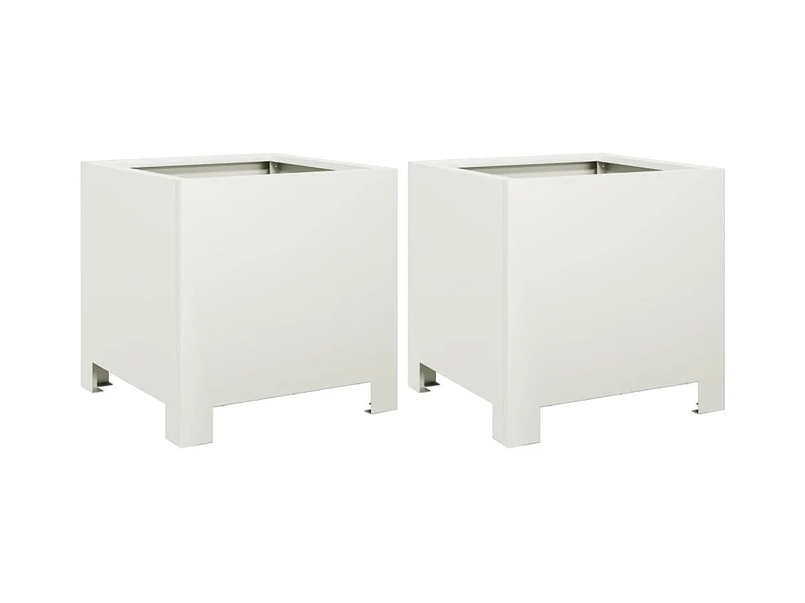 Fioriere da Giardino 2 pz Bianche 40x40x40 cm in Acciaio