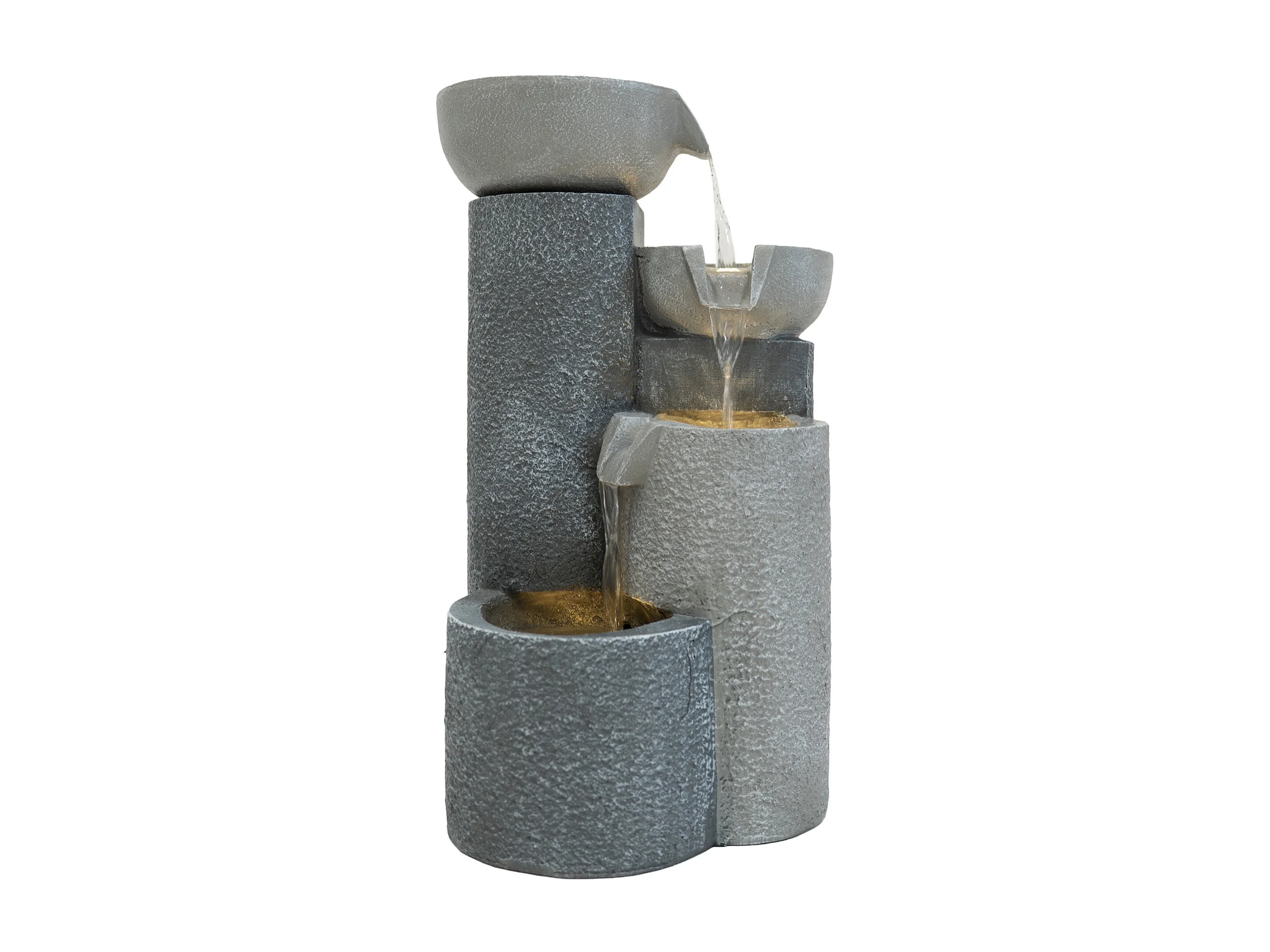 Fontana Cascata da Esterno in Poliresina Grigia con 4 Luci LED Bianche Calde, Pompa Elettrica, Cavo da 7m – Tranquil Tiers + Spazzola per Pulizia Inclusa
