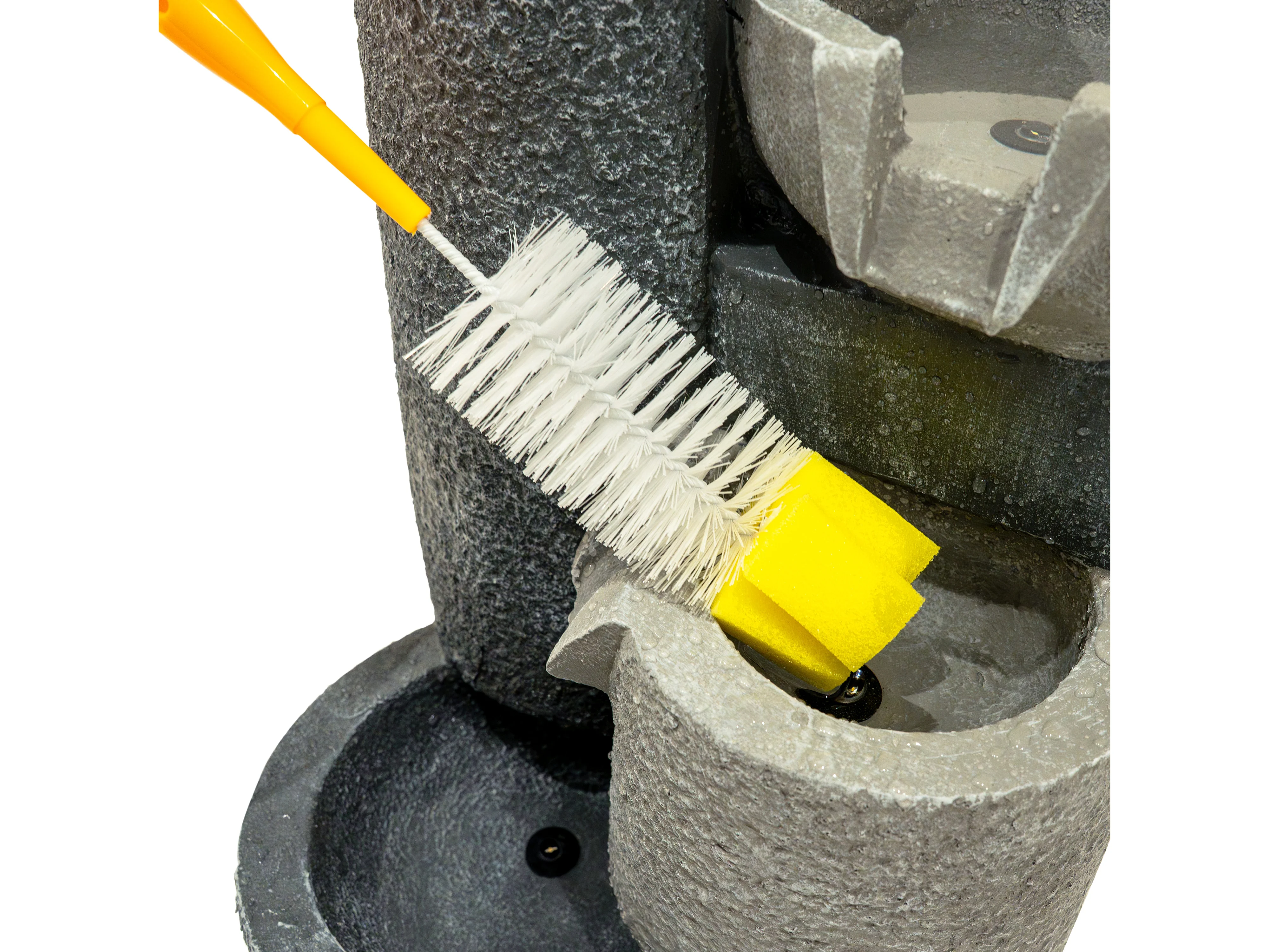 Fontana Cascata da Esterno in Poliresina Grigia con Sfera LED Bianca Calda, Pompa Elettrica, Cavo da 7m – Zen Cascade + Spazzola per Pulizia Inclusa