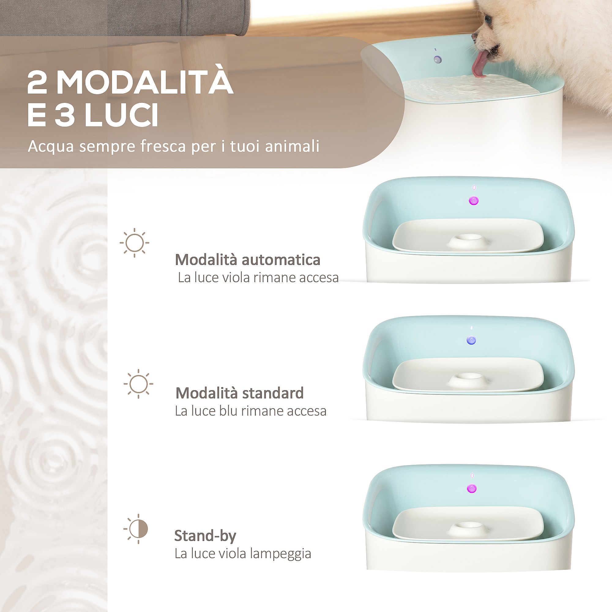 Fontanella per gatti e cani da 3l filtro luce led sensore di movimento