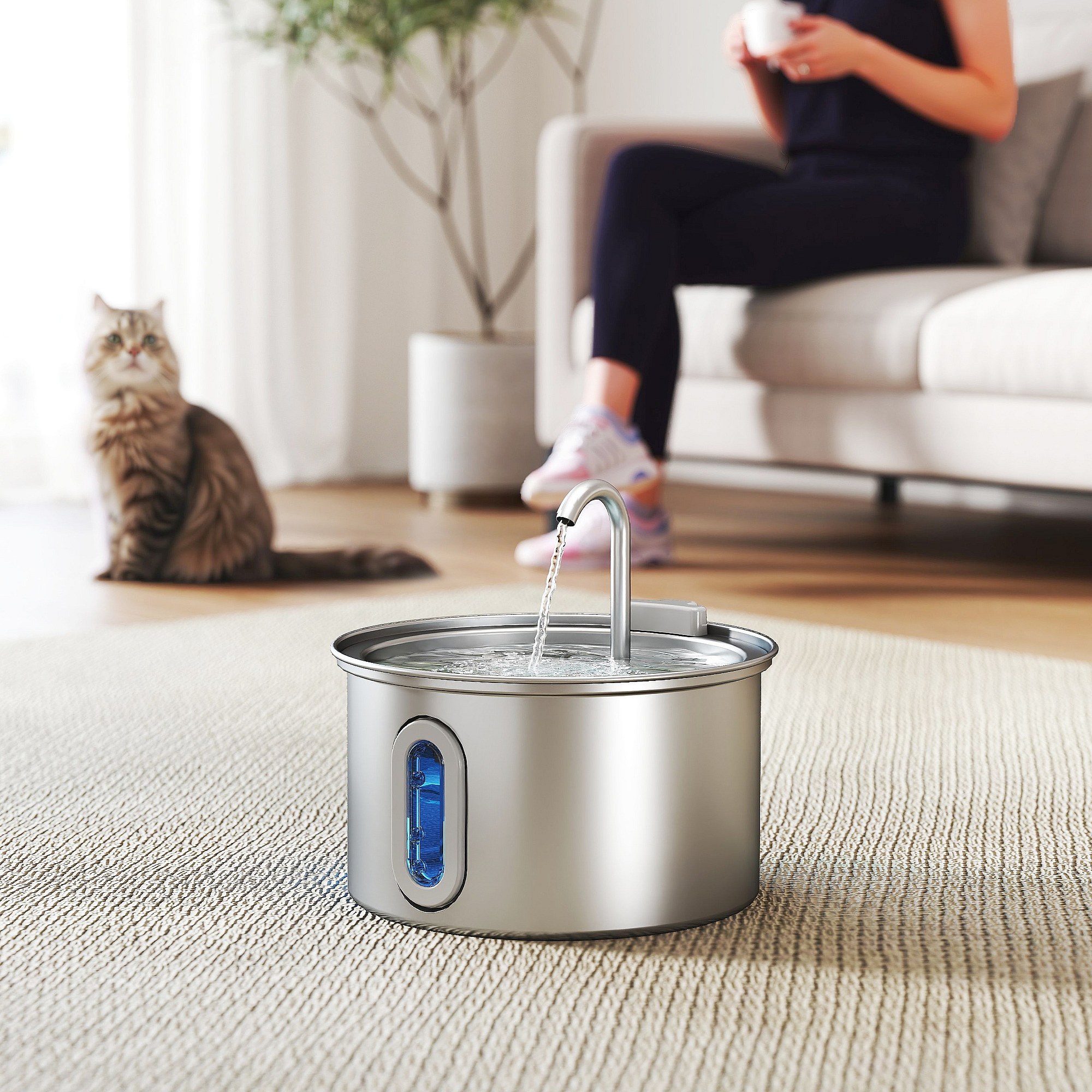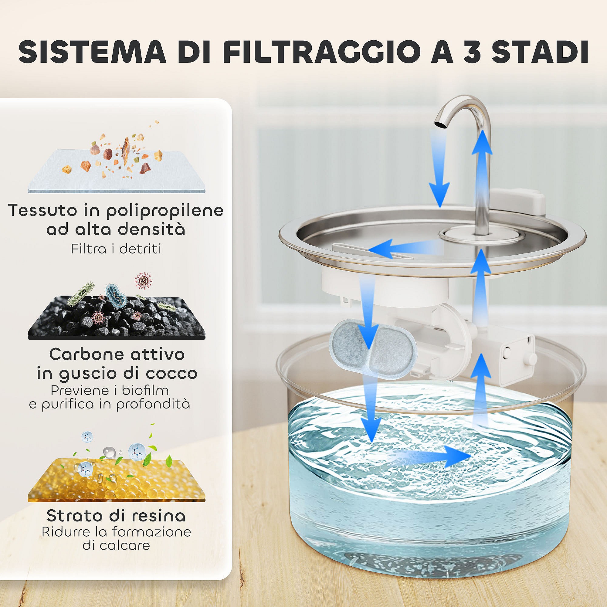 Fontanella per gatto da 2.5l con luce led 19.4x19.4x18.7 cm, argento