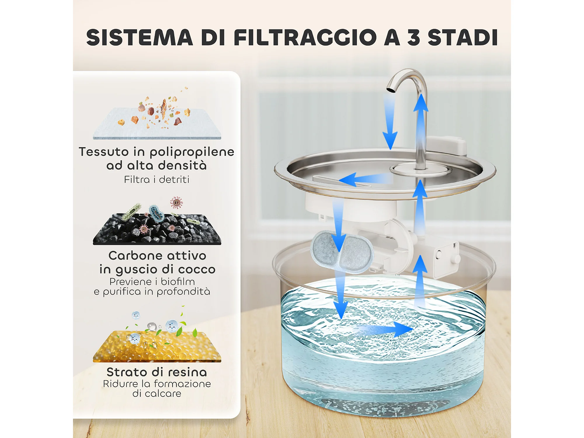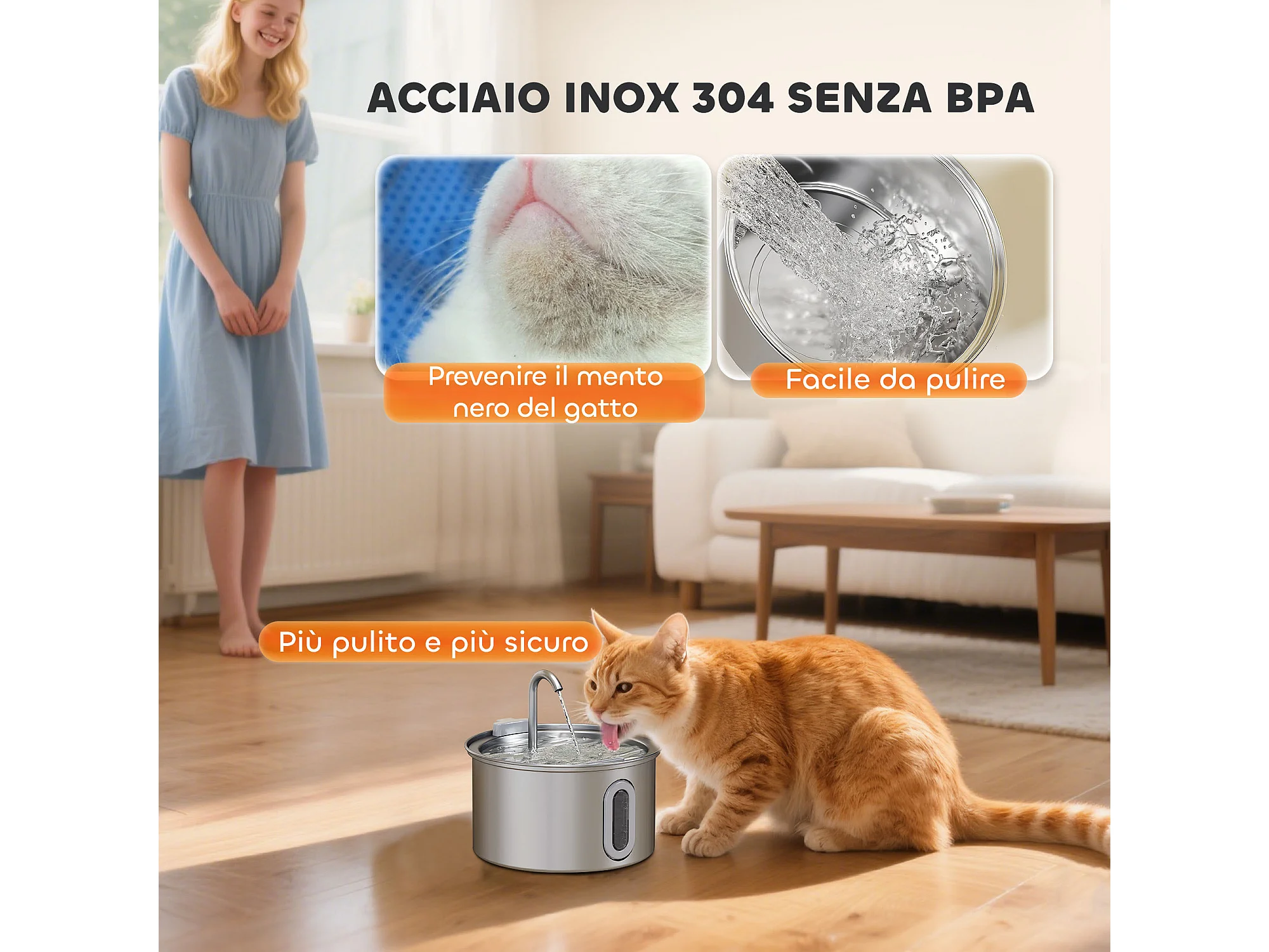 Fontanella per gatto da 7l con luce led 32x22.1x22.3 cm argento