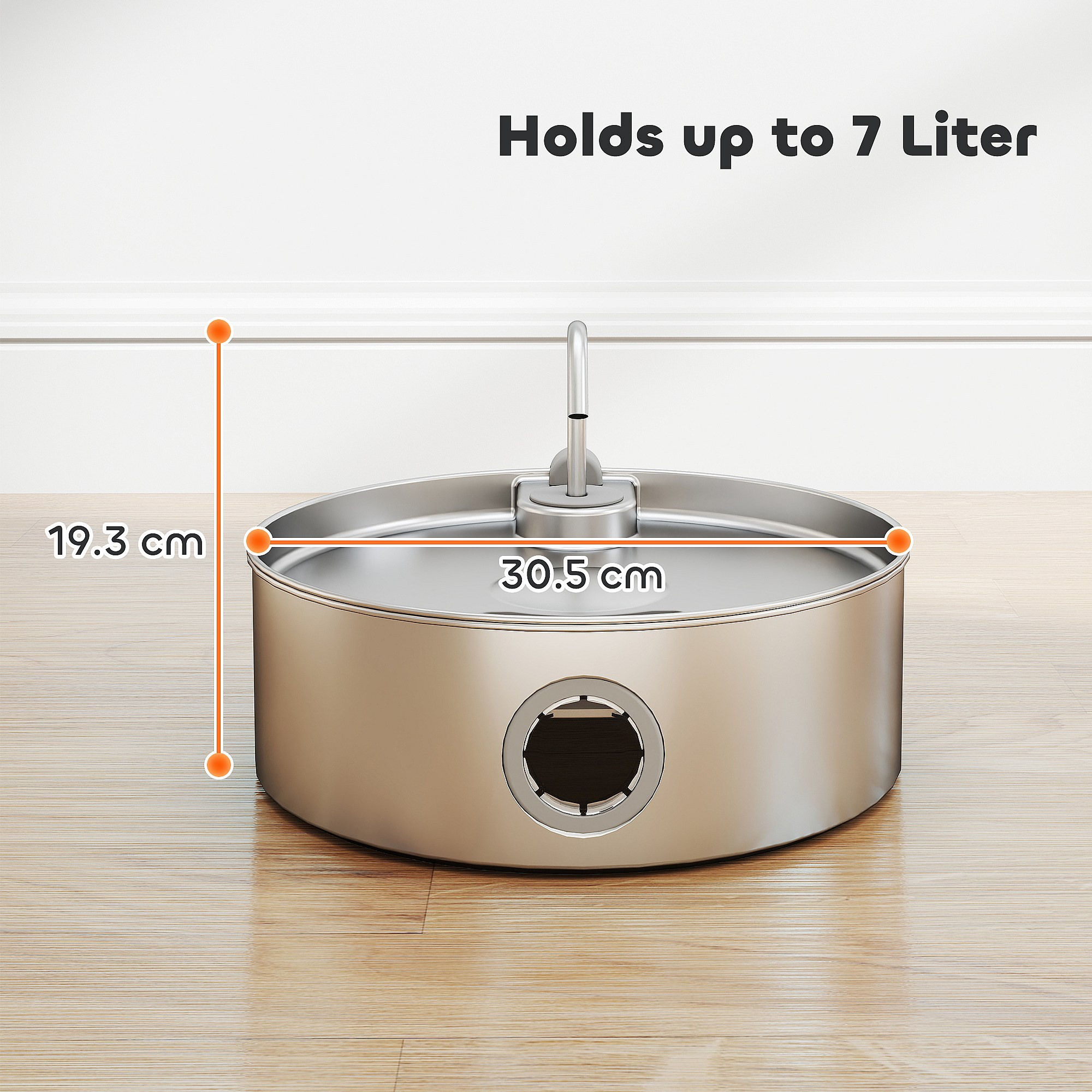 Fontanella per gatto da 7l con luce led 30.5x31.2x19.3 cm argento