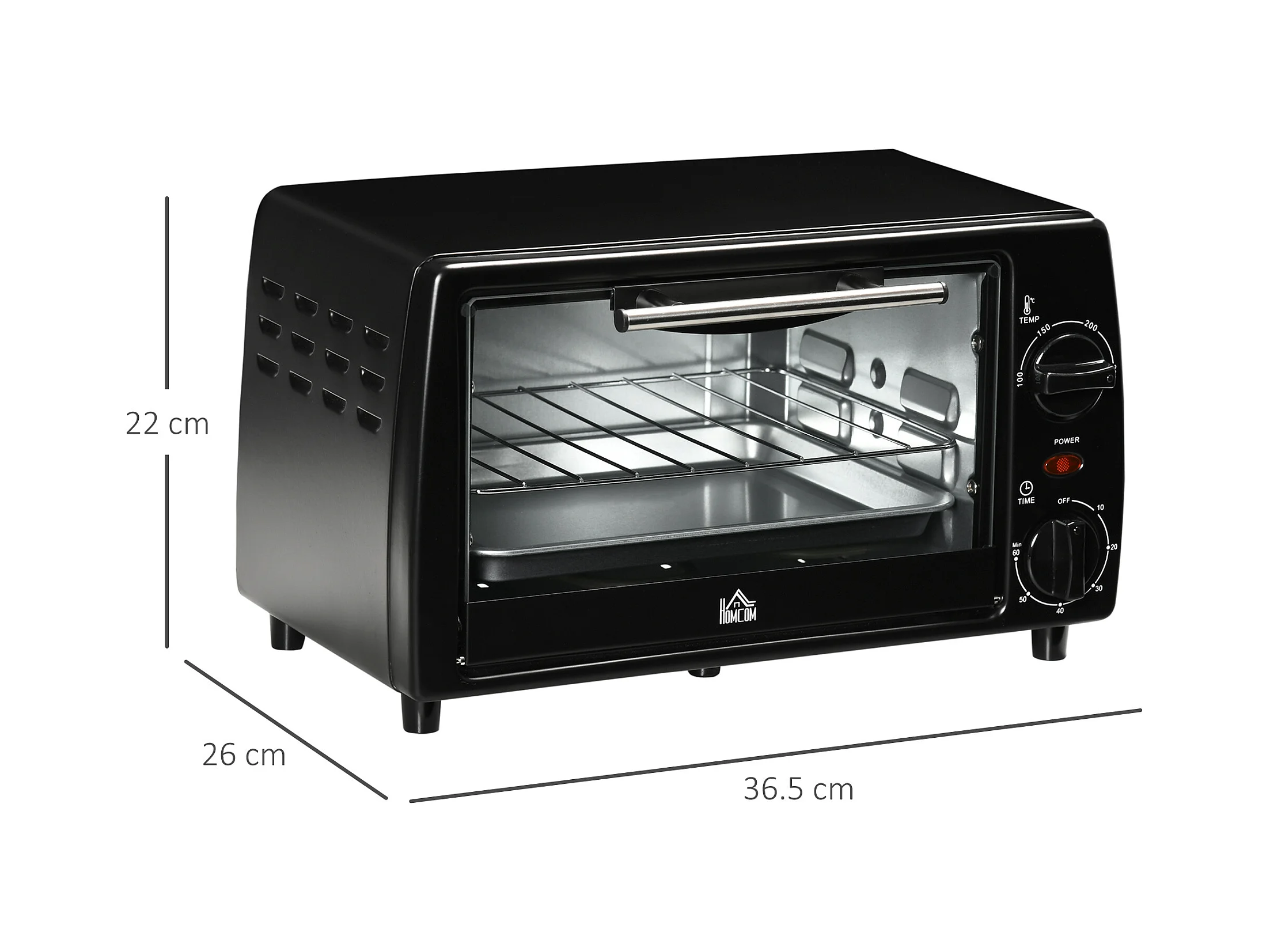 Forno mini 9L, 750W, temperatura regolabile 100°C-230°C, timer 60 min, teglia e griglia, metallo, nero (36,5x26x22cm)
