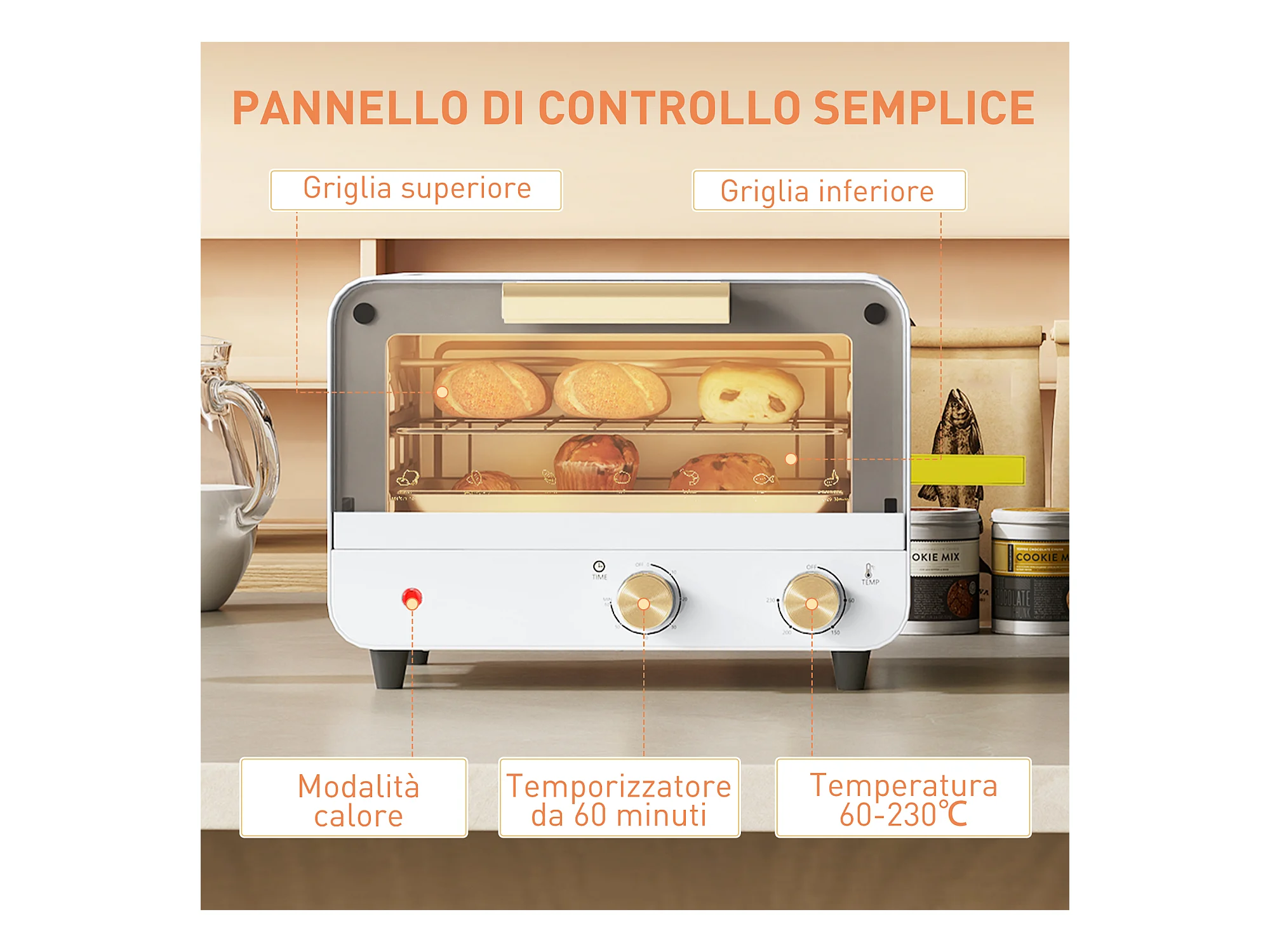 Fornetto elettrico temperatura regolabile 3 metodi di cottura bianco
