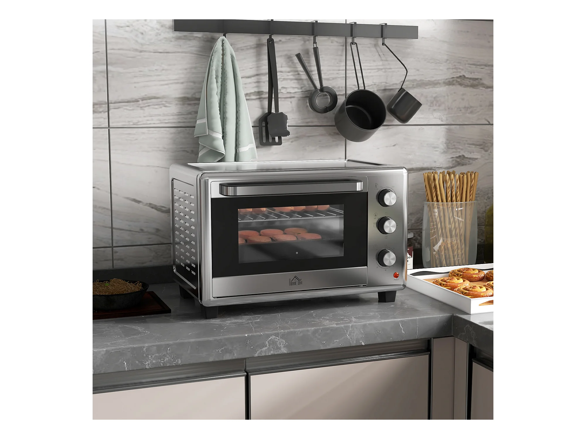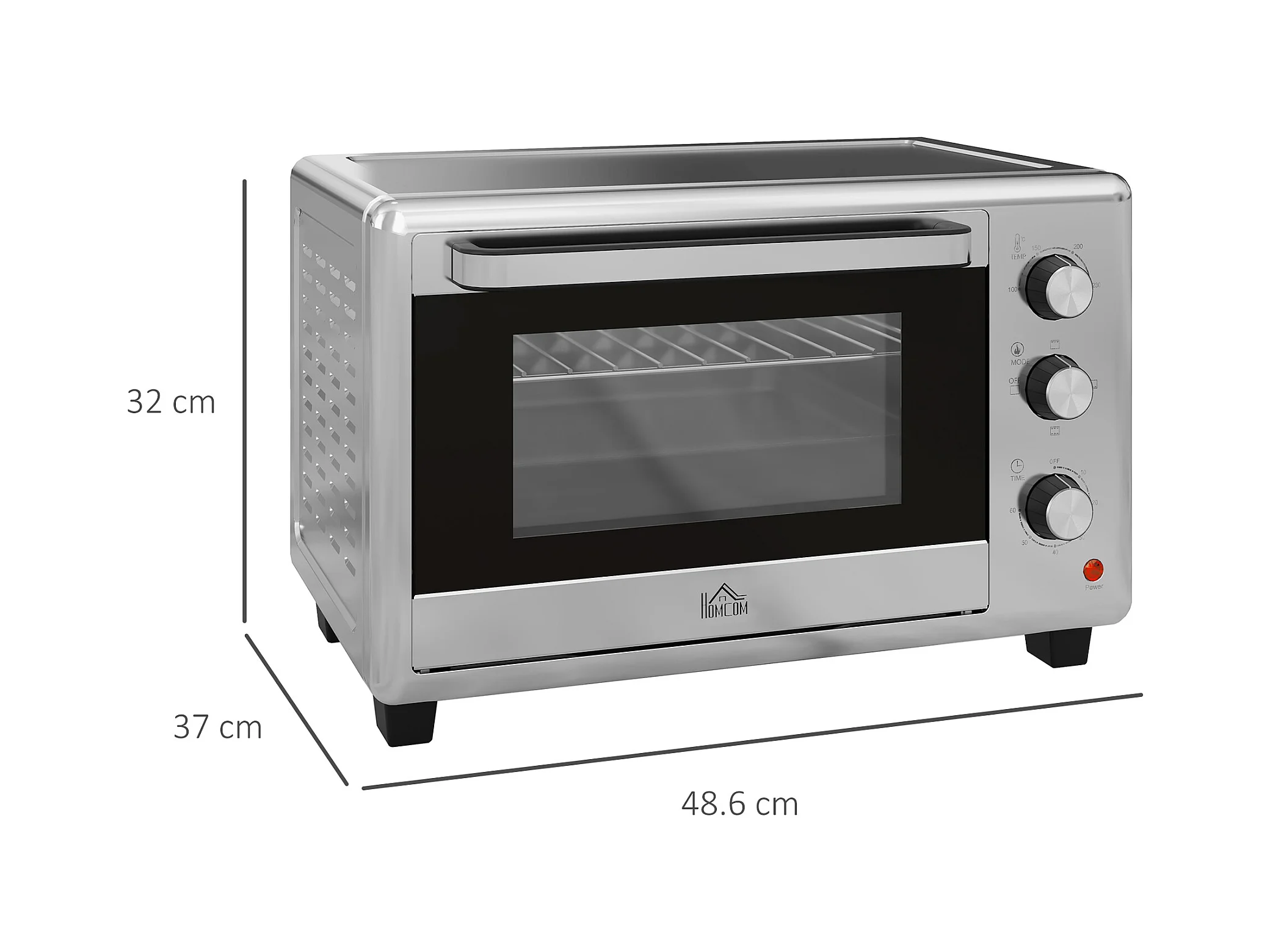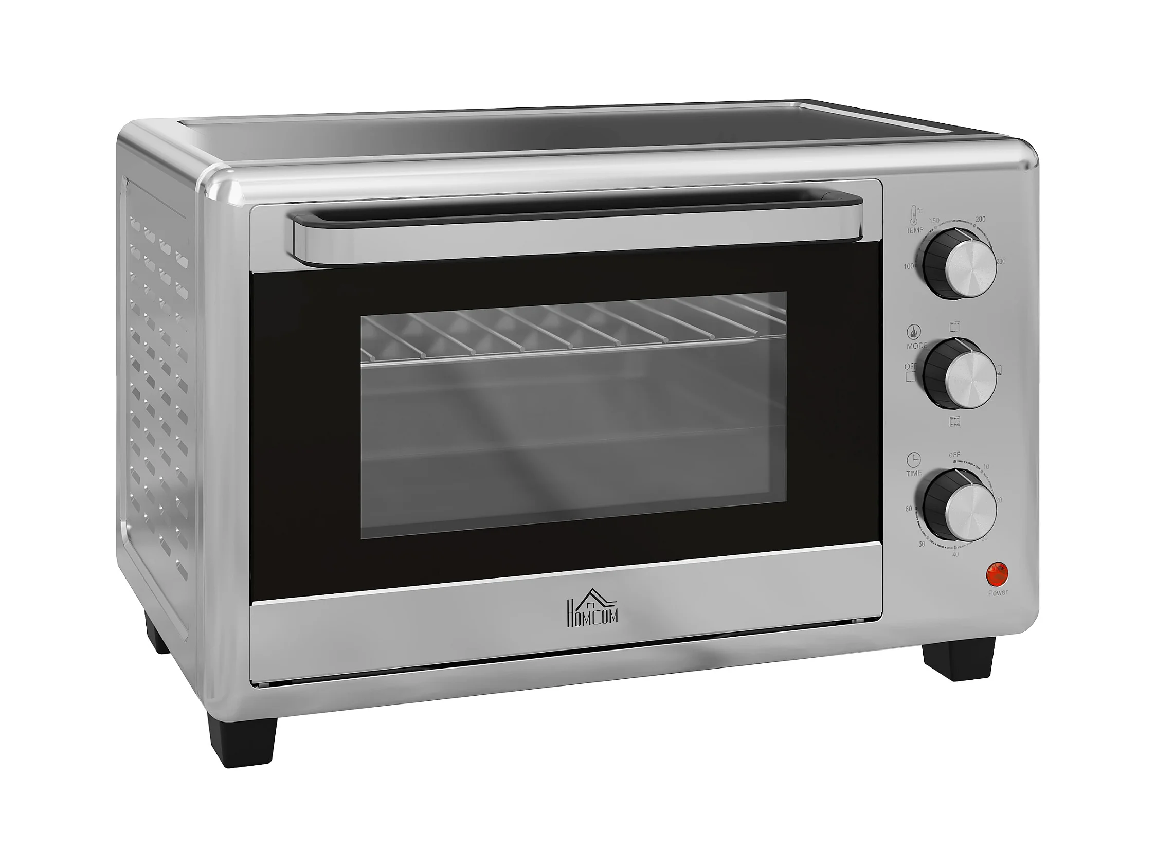 Forno mini 32L, 1600W, 3 modalità di cottura, 100-230°C, con timer 1h, teglia, griglie e vassoio raccogli briciole, metallo, argento (52,2x38,1x33,5cm)
