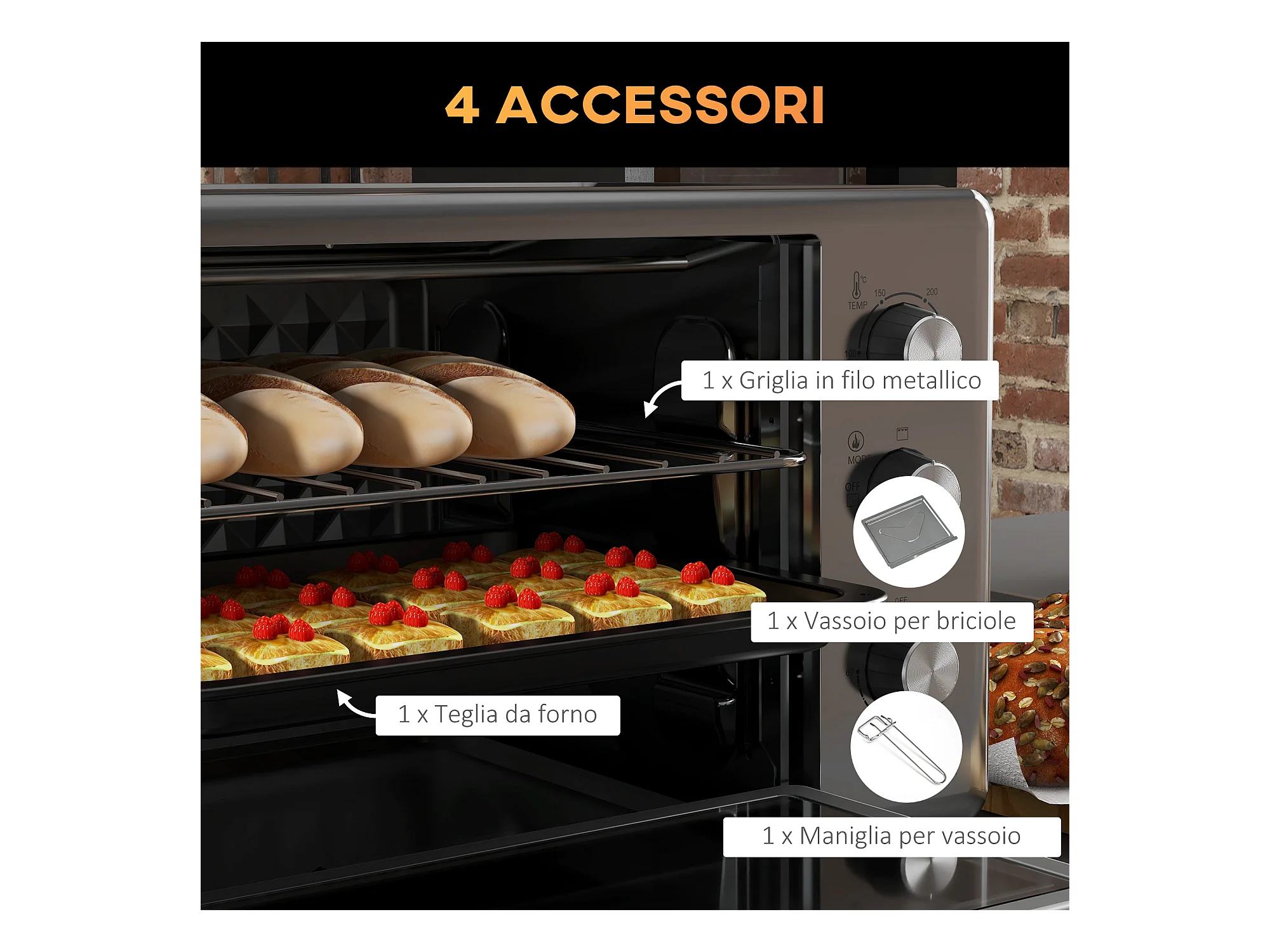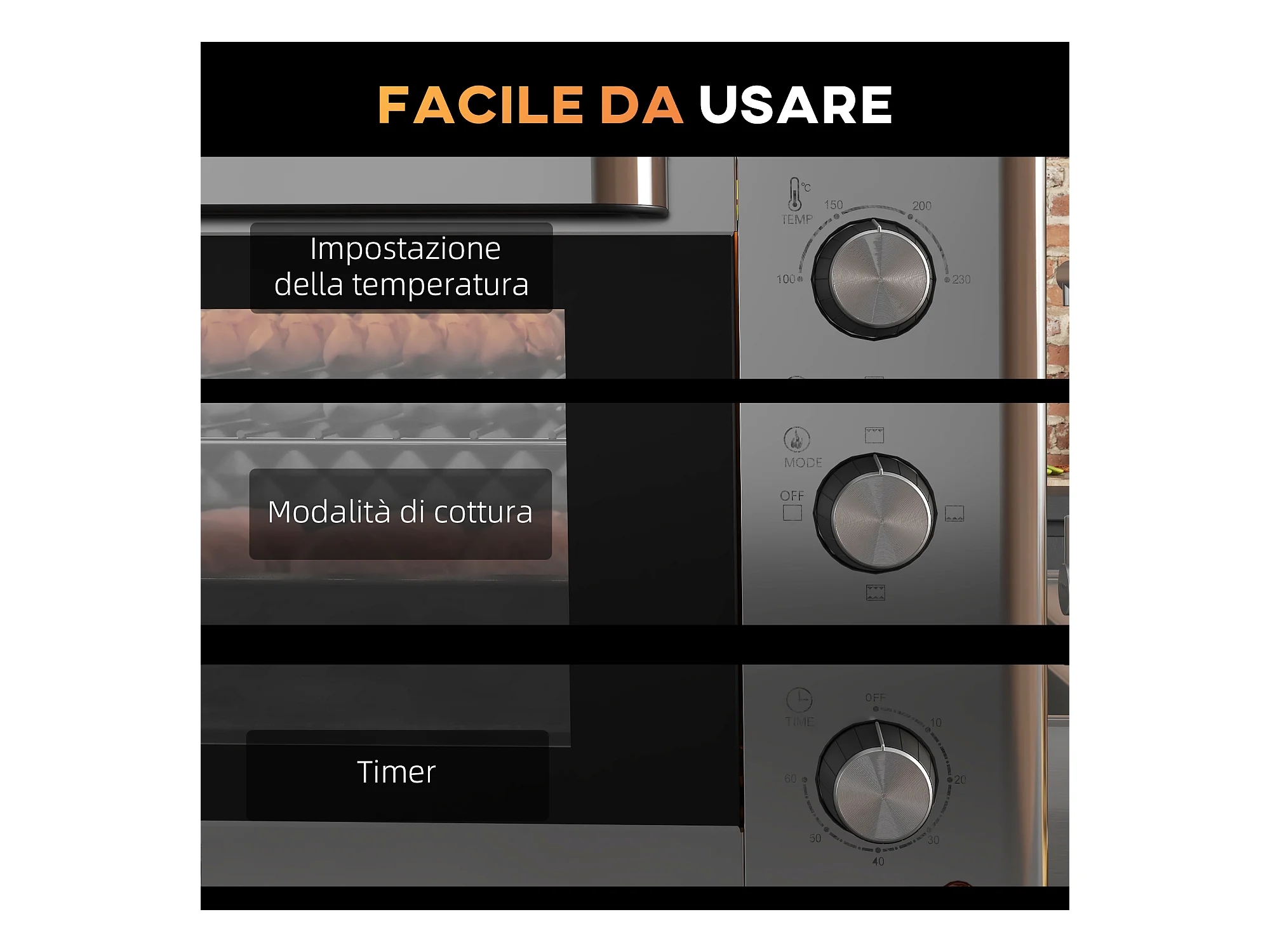 Fornetto elettrico con 3 funzioni temperatura regolabile e timer