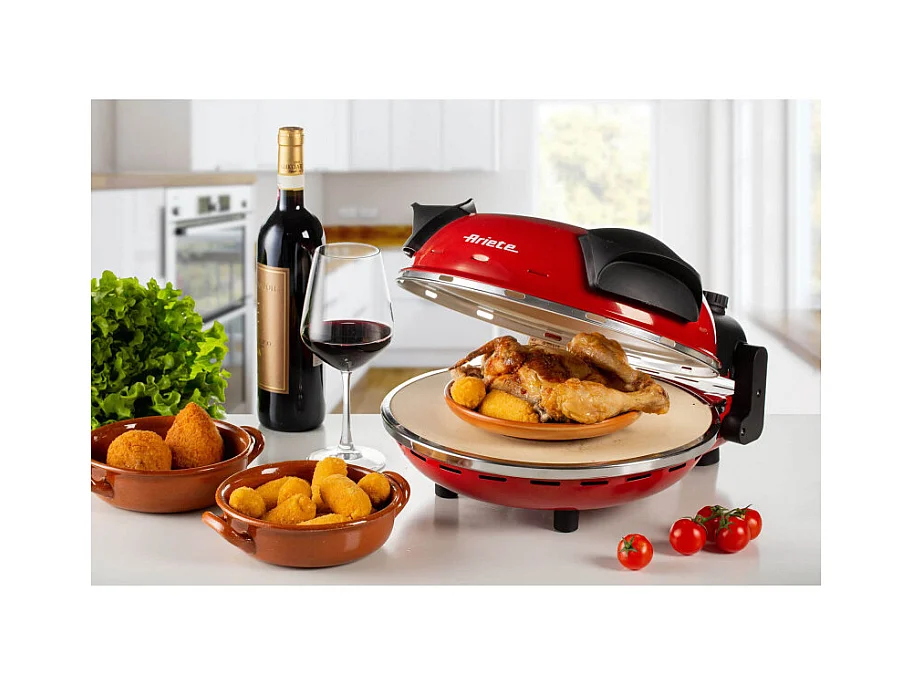 Forno pizza doppio 2300W, 2 pietre refrattarie, 5 livelli di cottura, 2 pale inox - Rosso