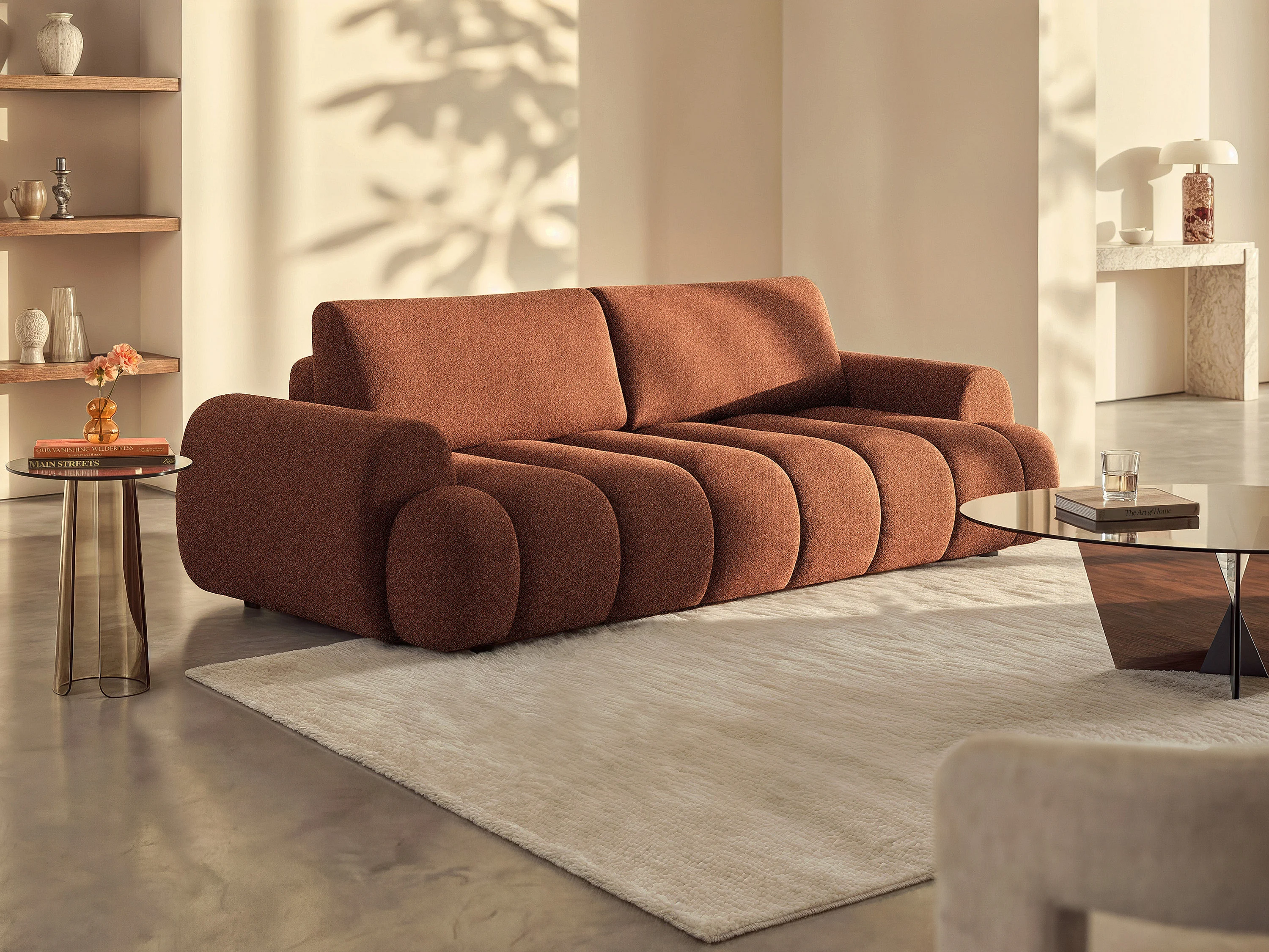 Divano 4 posti letto in tessuto terracotta FRIDORA
